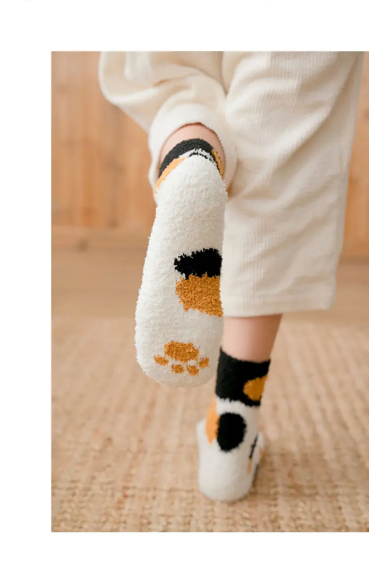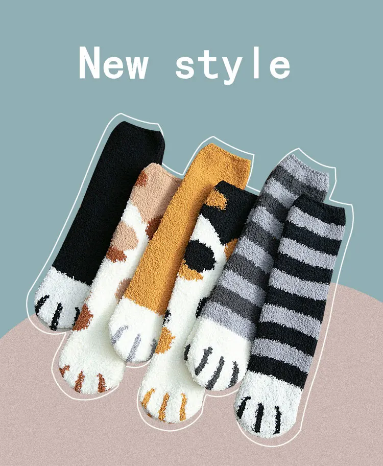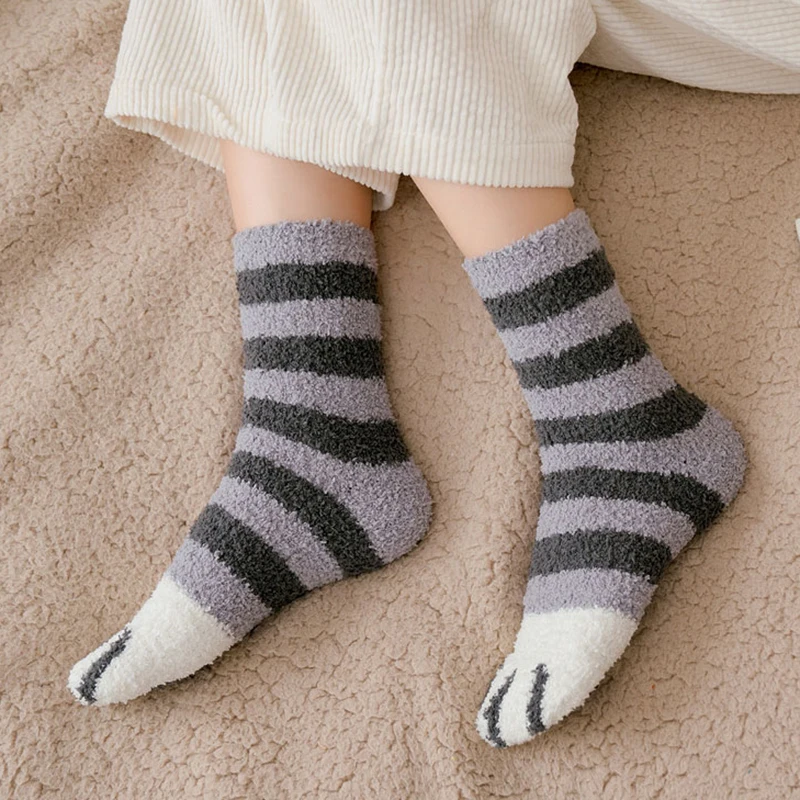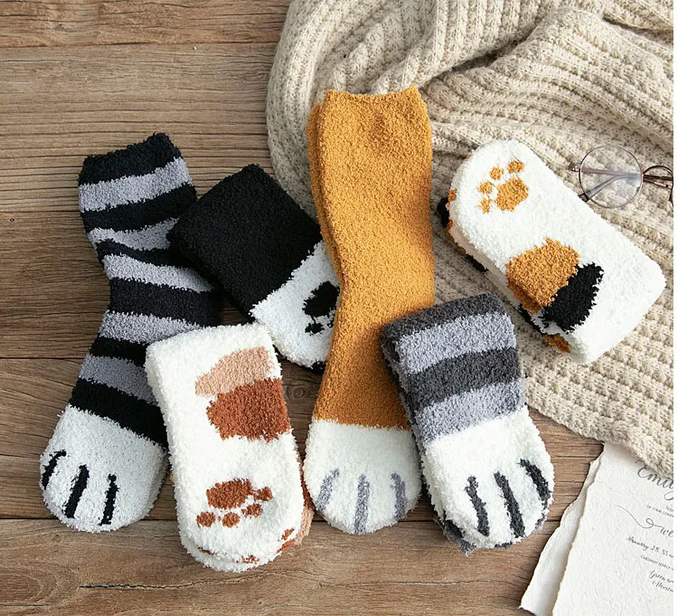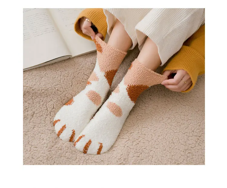 Носки женские осенне-зимние, теплые, плюшевые, кошачьи лапки
