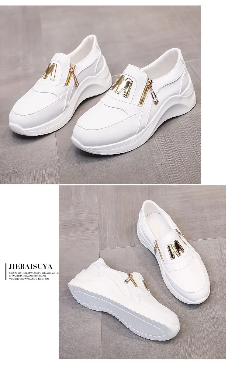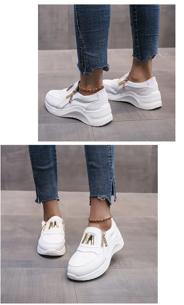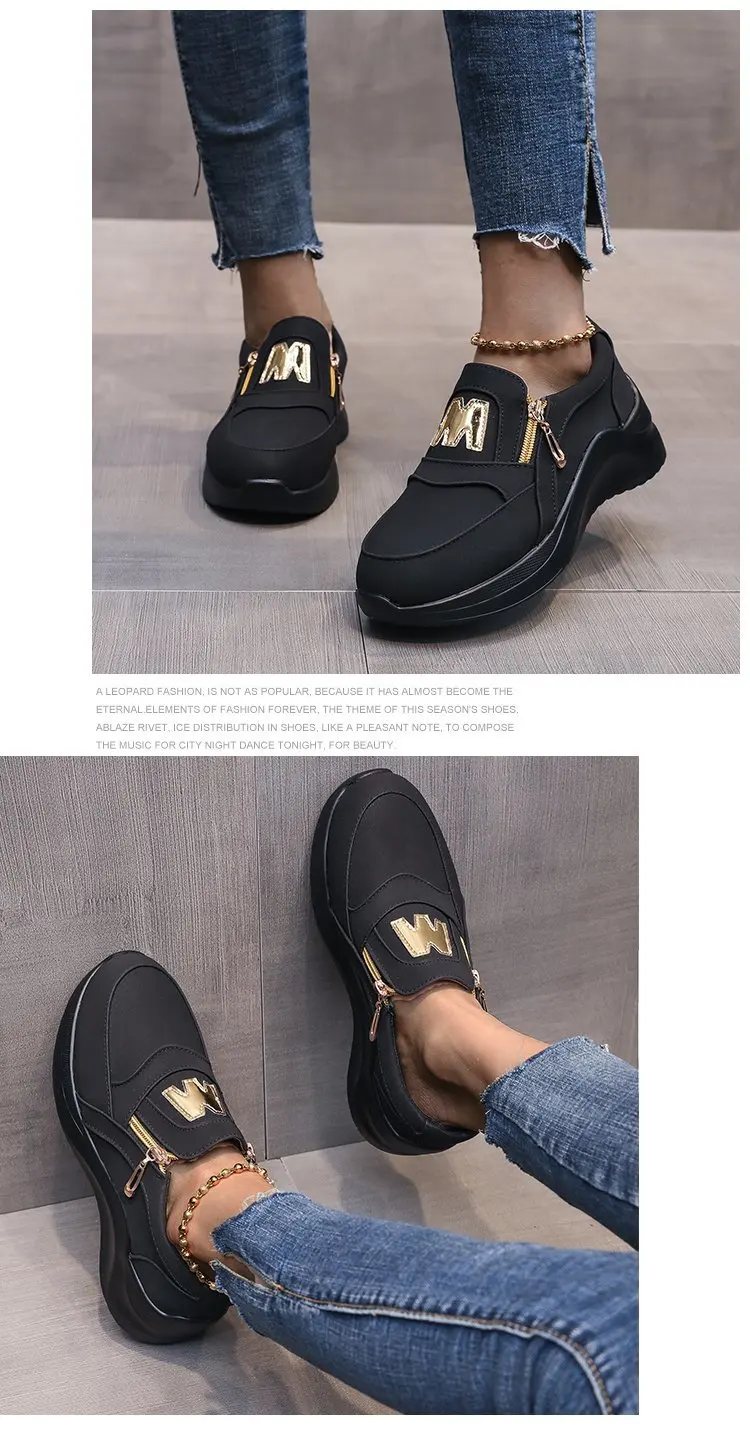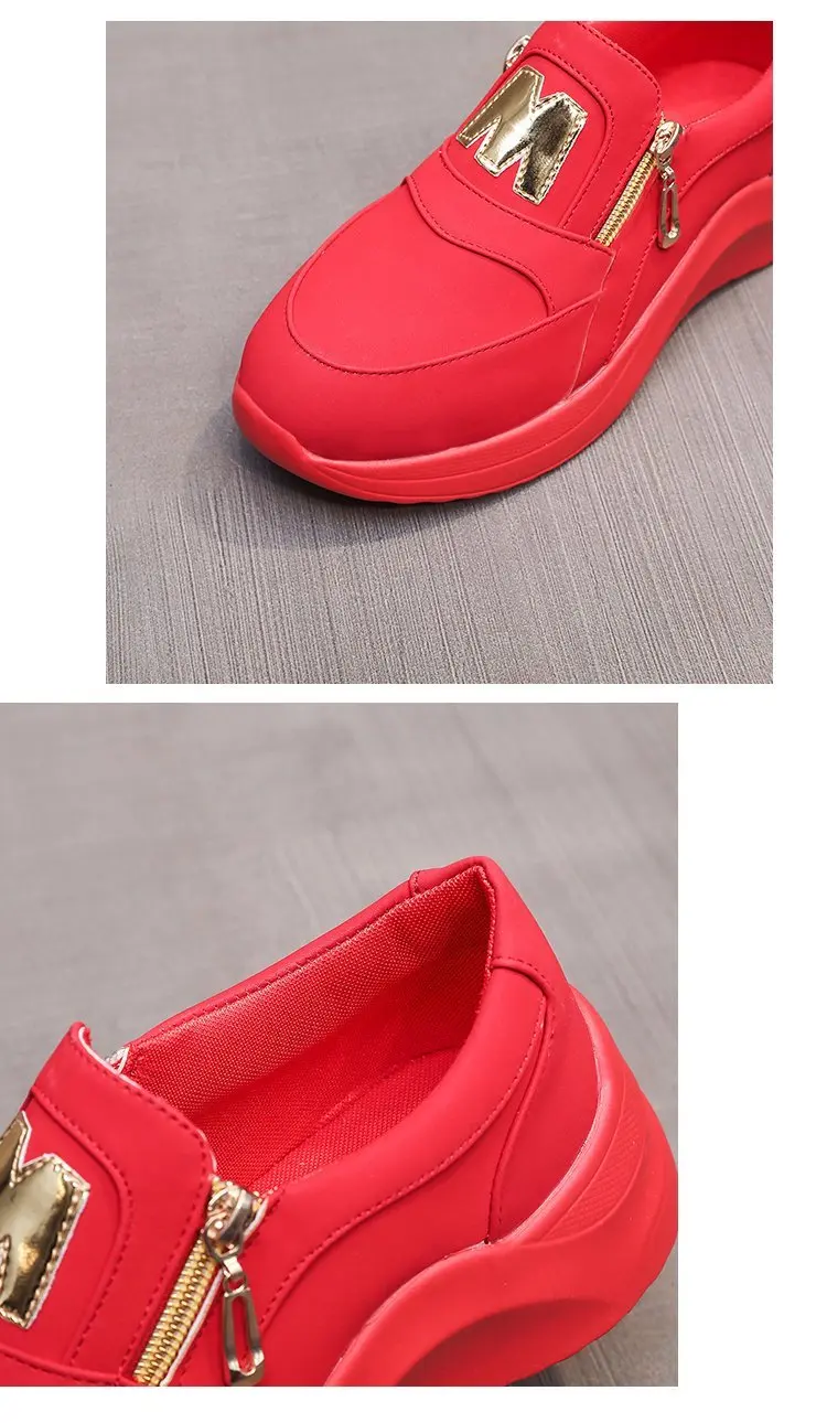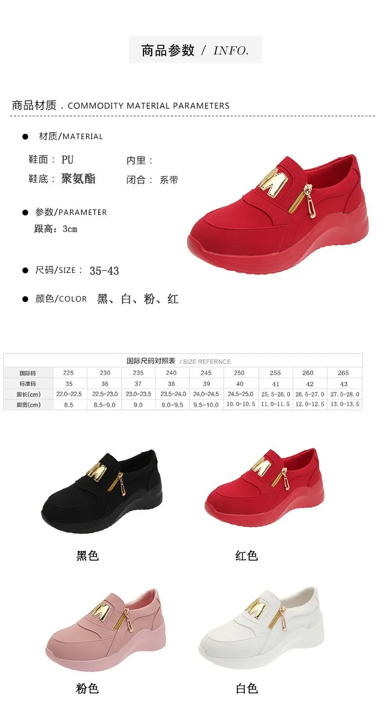 Кроссовки на танкетке для женщин, Вулканизированная подошва, на толстой нескользящей подошве, на молнии, повседневная обувь, черныекрасные