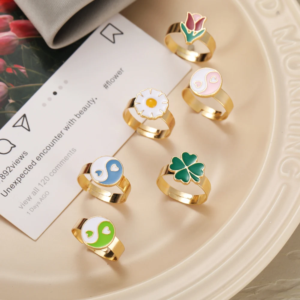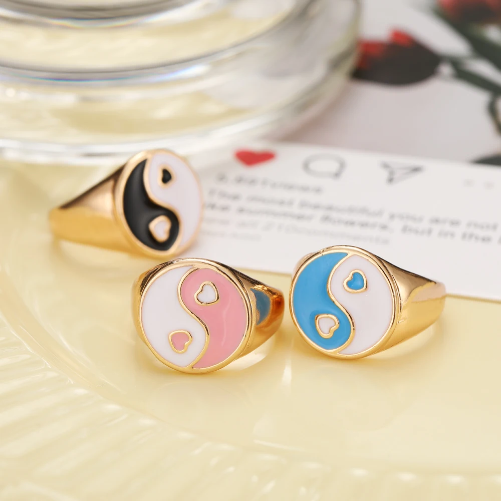 Модные эмалированные цветные яркие кольца в стиле Тай-Чи для женщин...