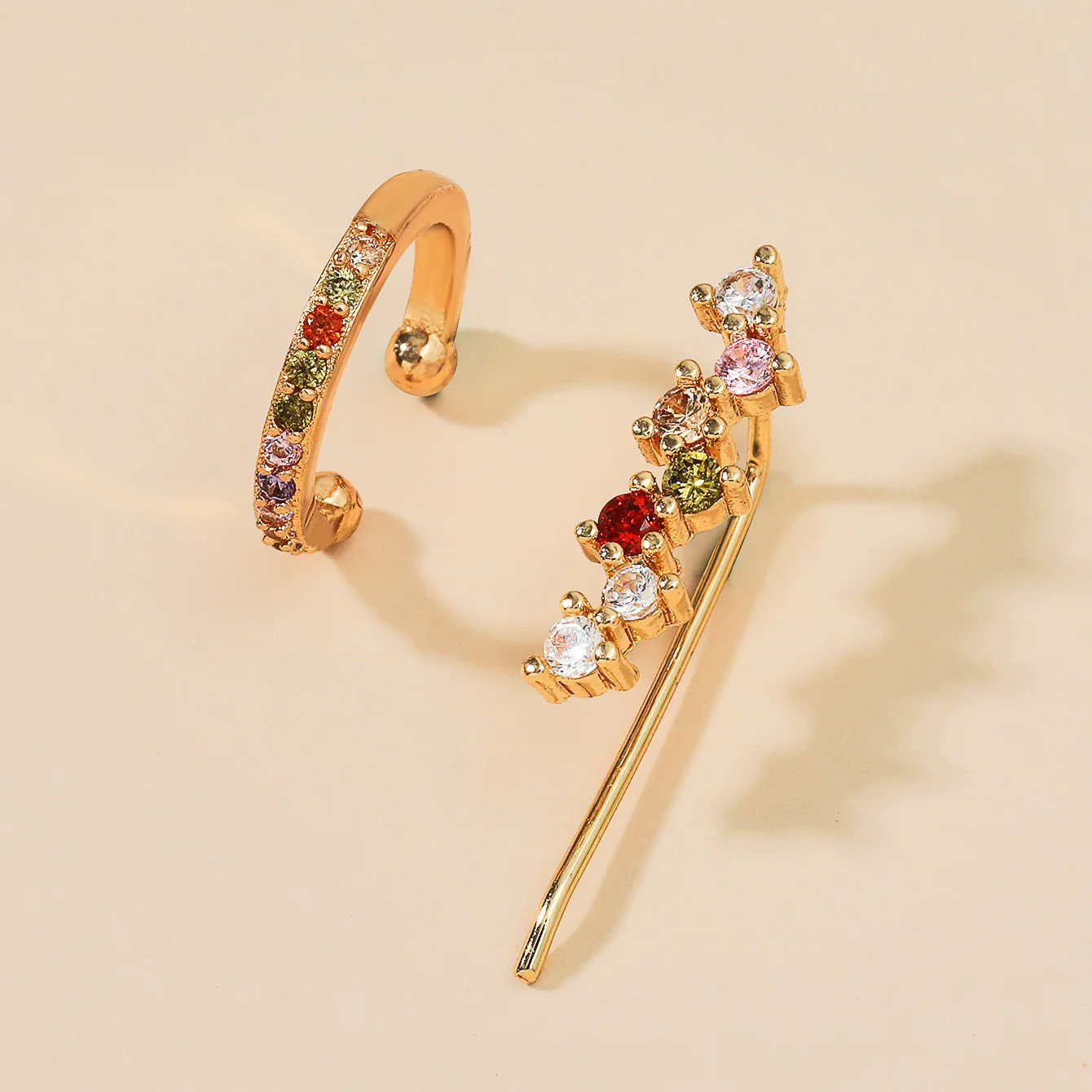 Серьги-каффы KOtik в богемном стиле без пирсинга с кристаллами, мод...