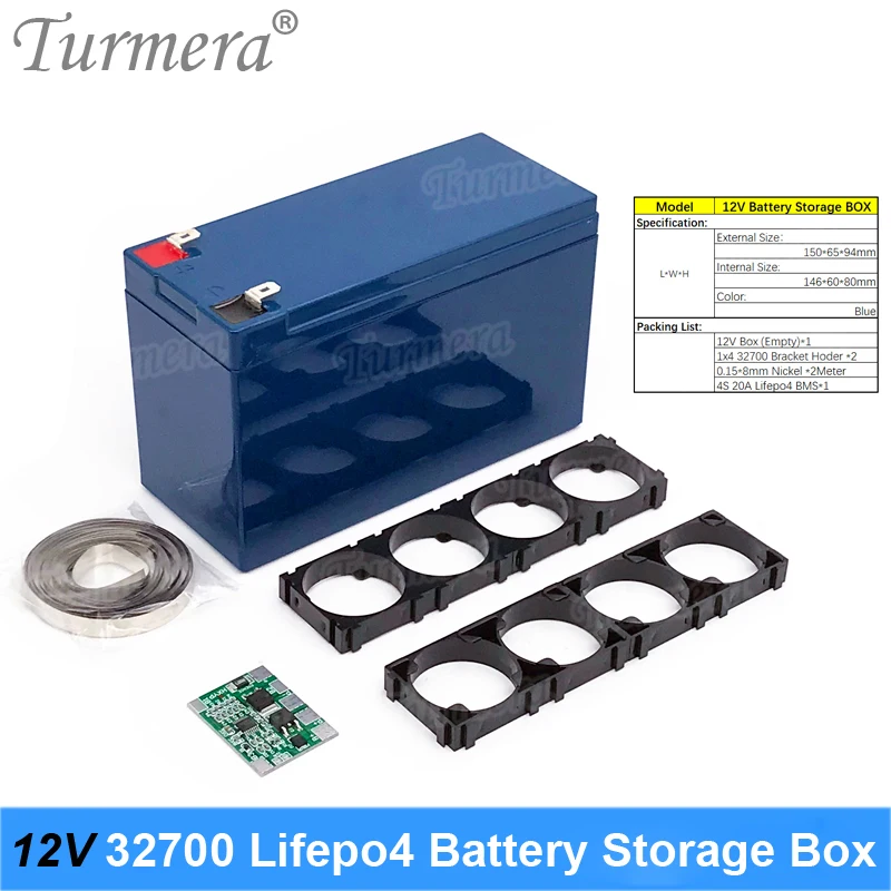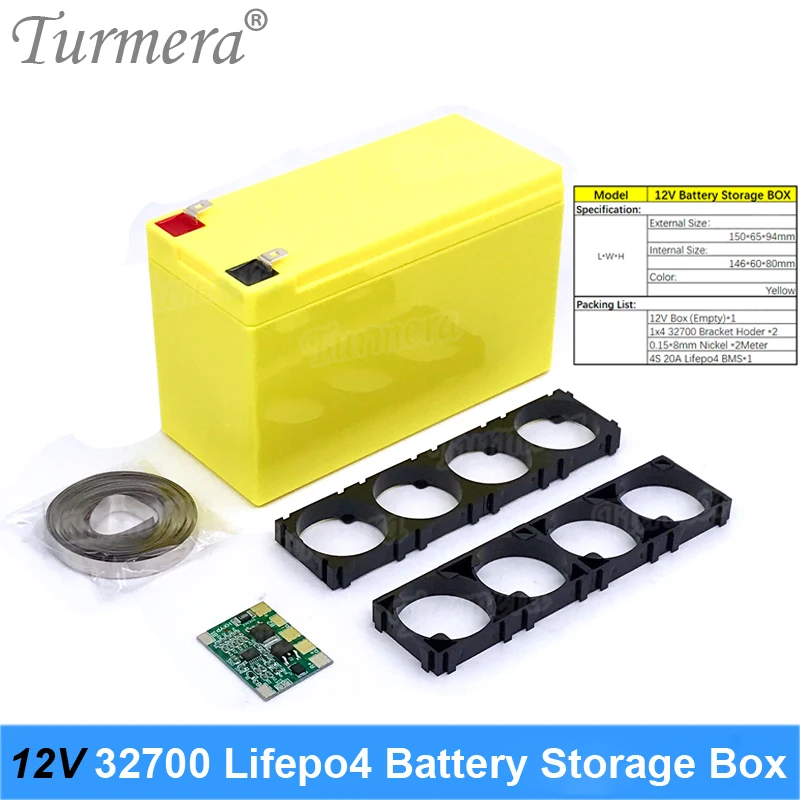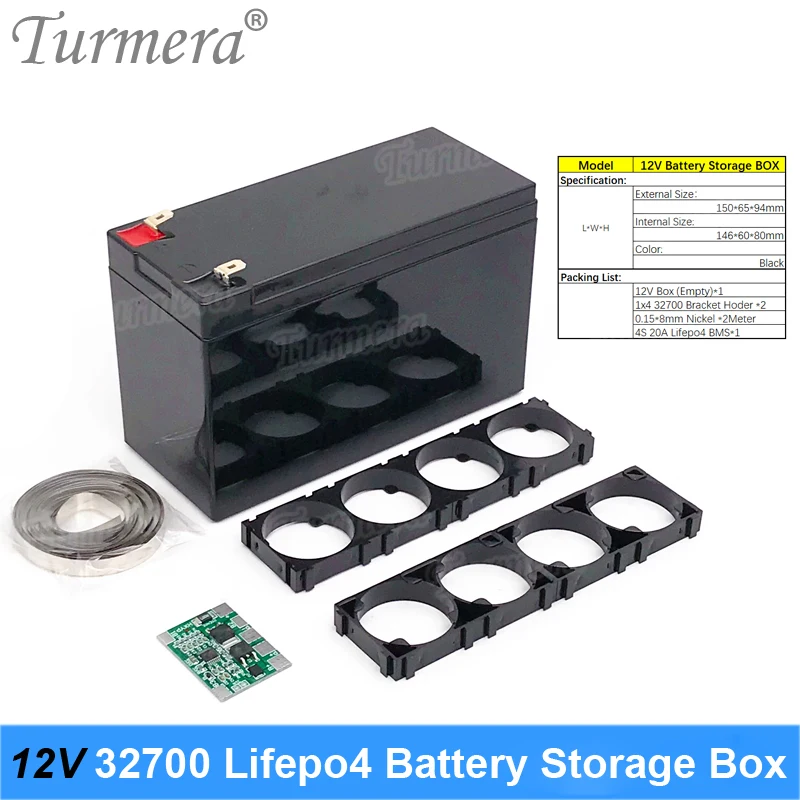 Turmera 12V 32700 Lifepo4 Батарея ящик для хранения 4S 20A BMS Никель с держателем для бесперебойной Питание или 12V мотоциклов Применение