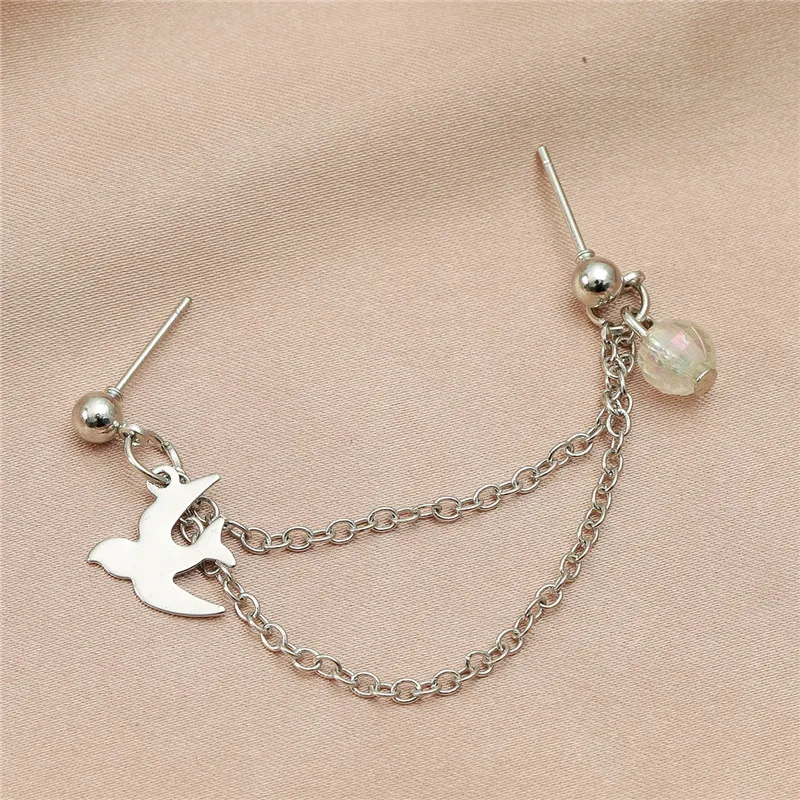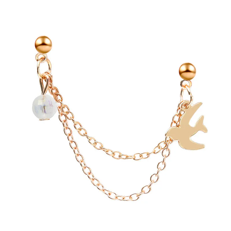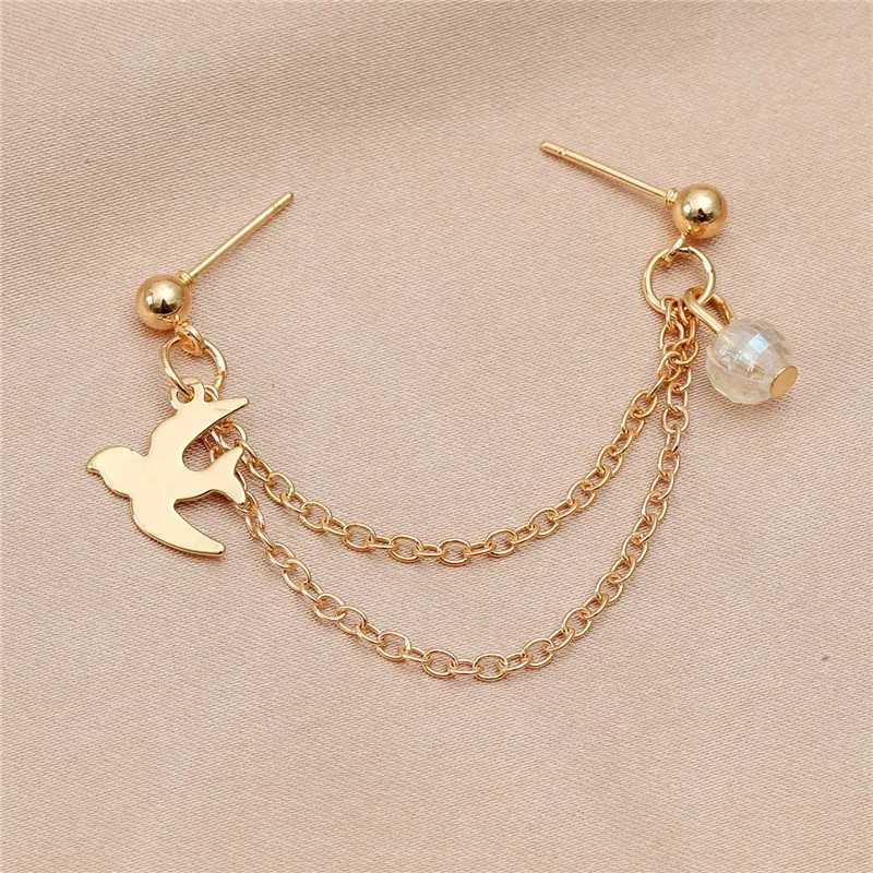 WUKALO простые круглые стразы с длинным детская пустышка на цепочке серьги для женщин; Цвет золотистый, серебристый Цвет птица кисточкой пирсинг вечерние серьги