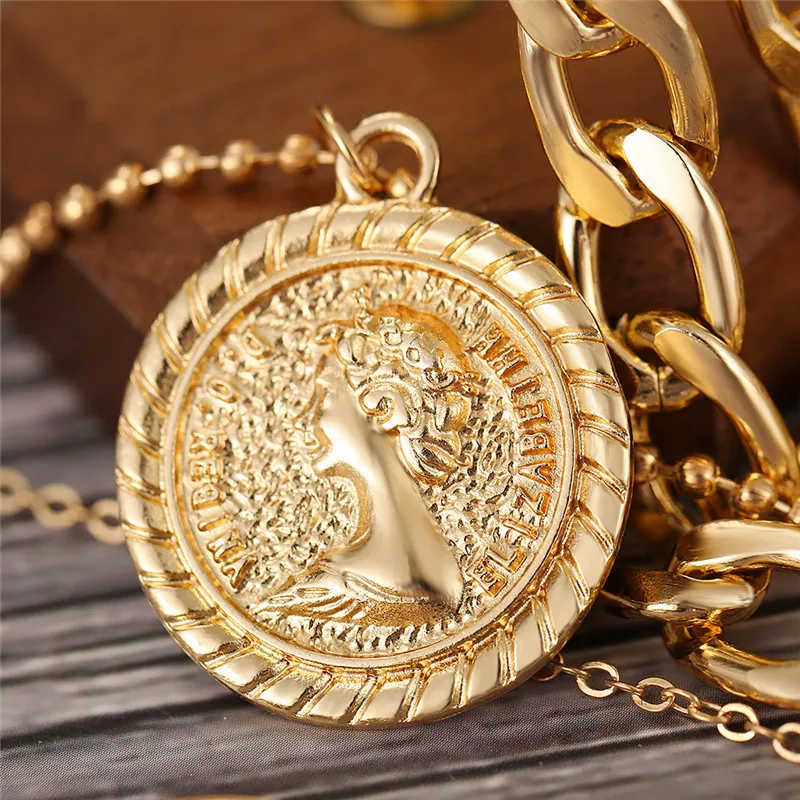 Золотая монета с портретом в стиле панк 17 км, ожерелье для женщин,...