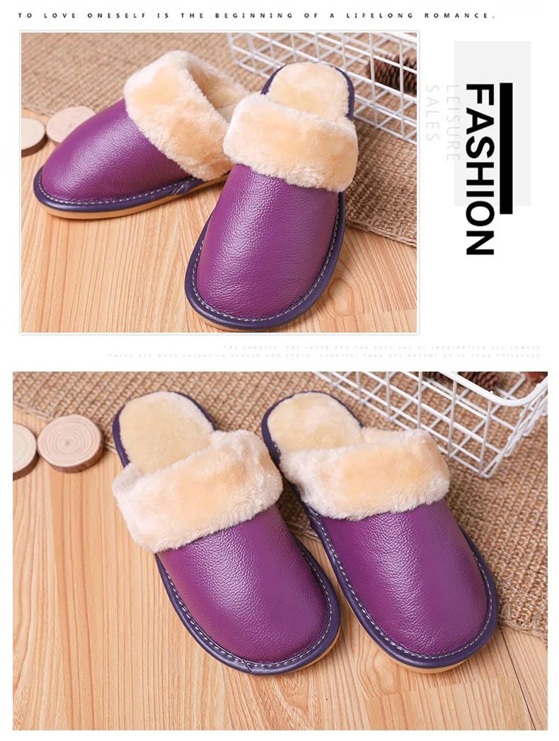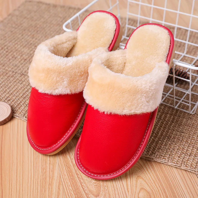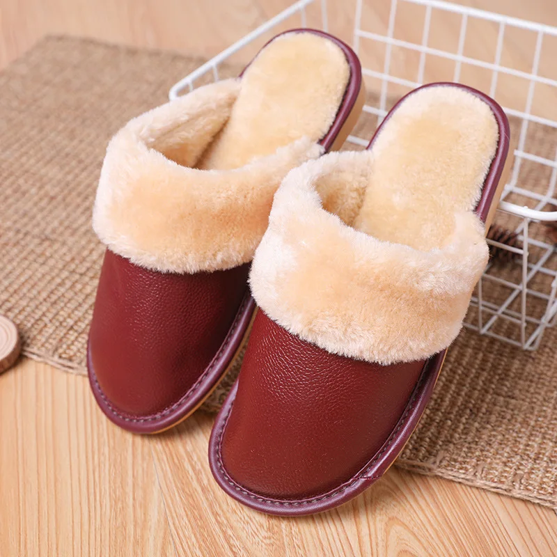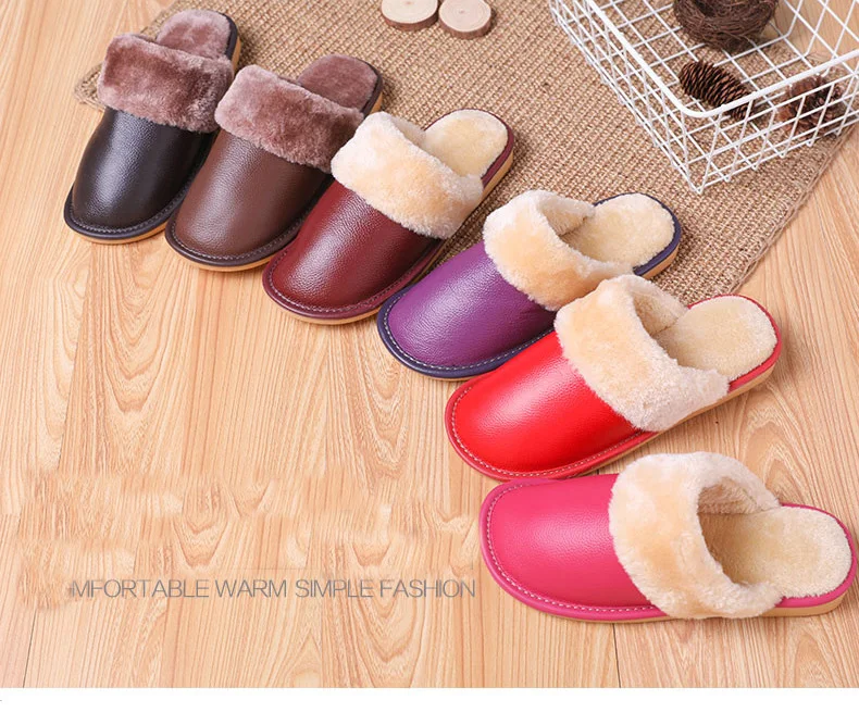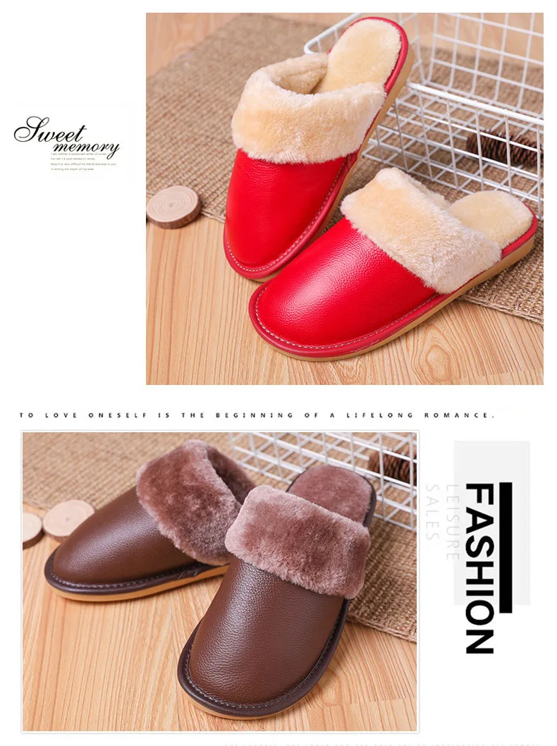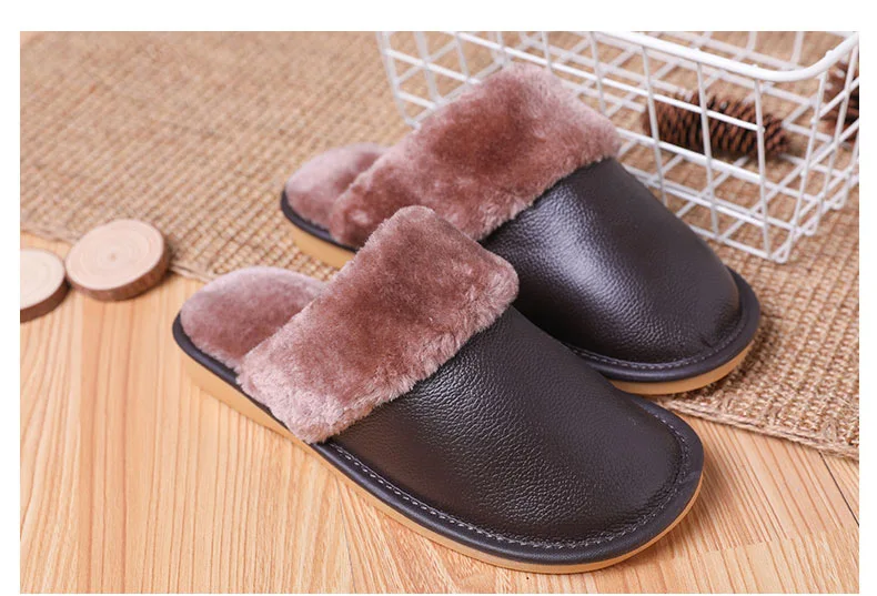 Тапки мужскиеженские из натуральной кожи, Теплые повседневные Модные хлопковые тапочки для пар, плюшевые домашние тапочки, большие размеры