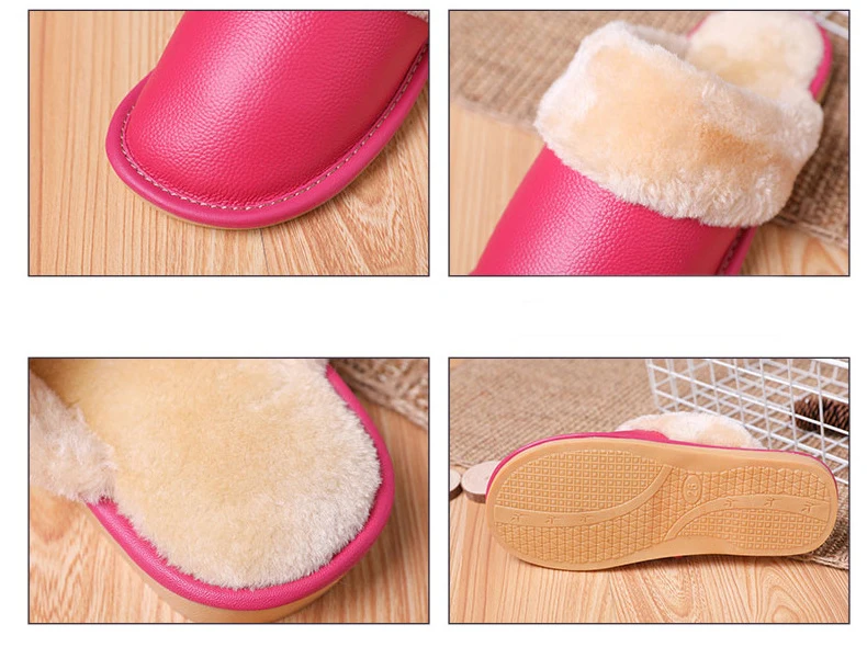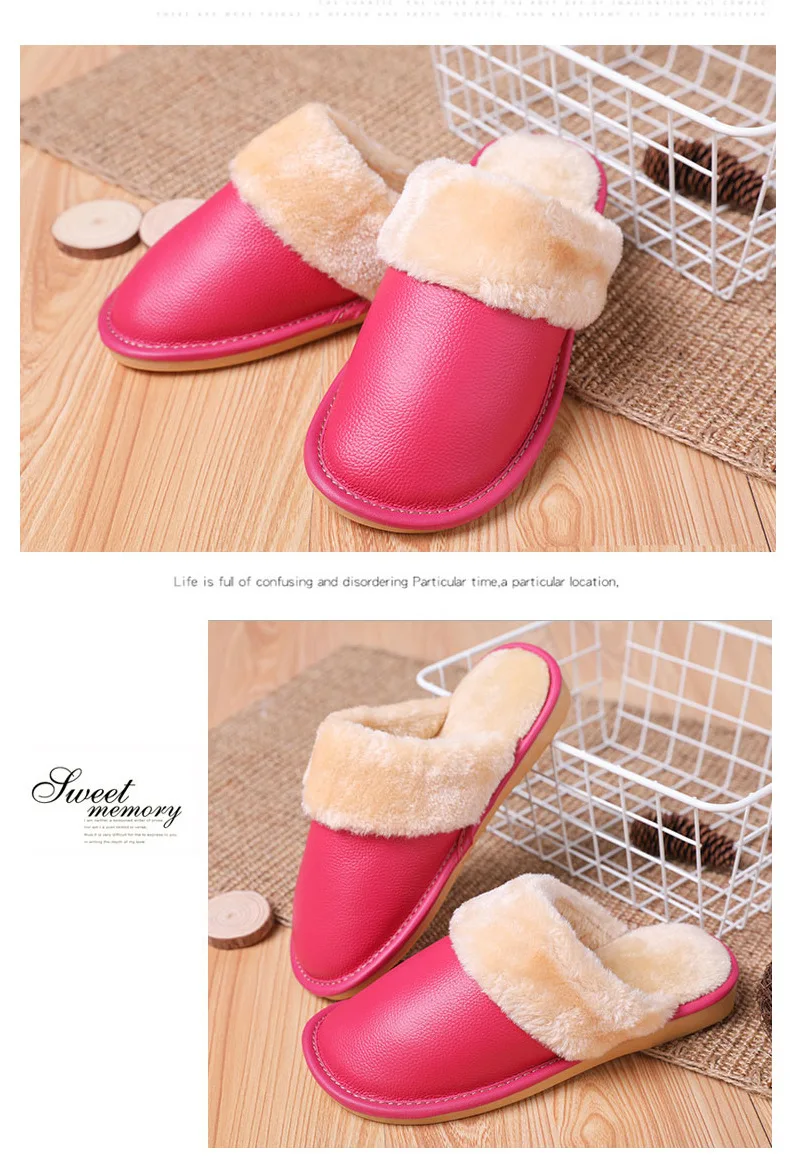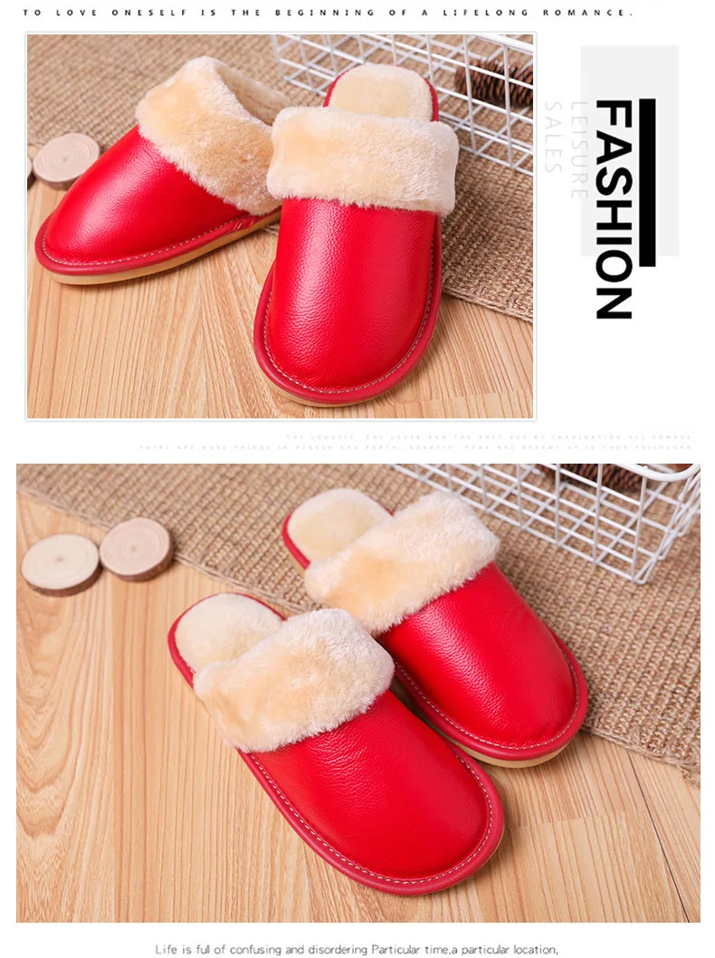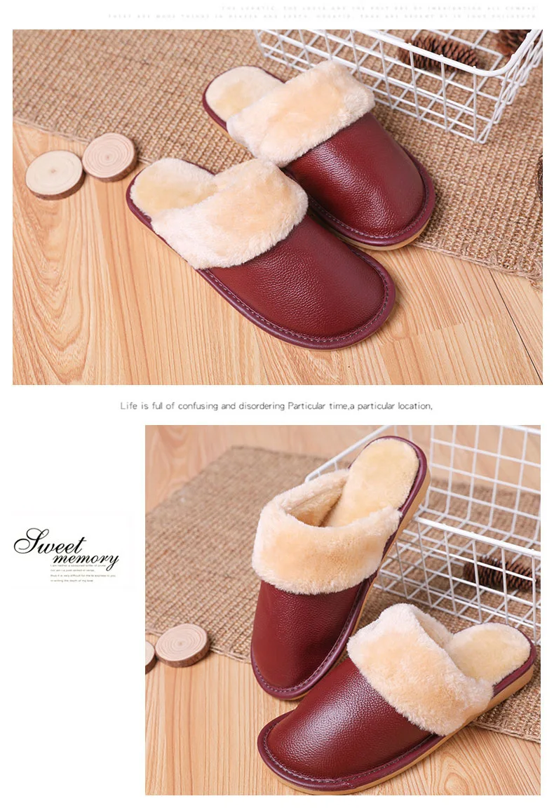 Тапки мужскиеженские из натуральной кожи, Теплые повседневные Модные хлопковые тапочки для пар, плюшевые домашние тапочки, большие размеры