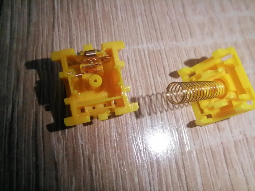 Переключатели поставляются в идеальном состоянии, как всегда. Я заказал 10х золотых выключателей, и я могу подтвердить, что это определенно не V1. Корпус и стебли этих выключателей соответствуют описанию так называемых V2 вариантов и, безусловно, туго и почти не царапаются (хотя, к сожалению, не идеально) и звук очень хороший. Интересно, что из 10 выключателей я получил только 2 из них обновили 14 пружины катушки, у других была старая версия, но я не думаю, что это повлияло ни на что, учитывая тот факт, что корпус обновлен. В целом я вполне доволен в любом случае.