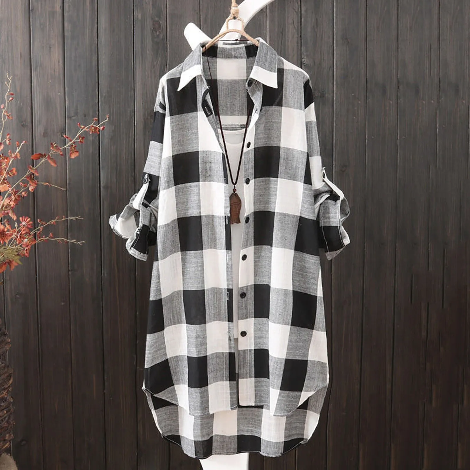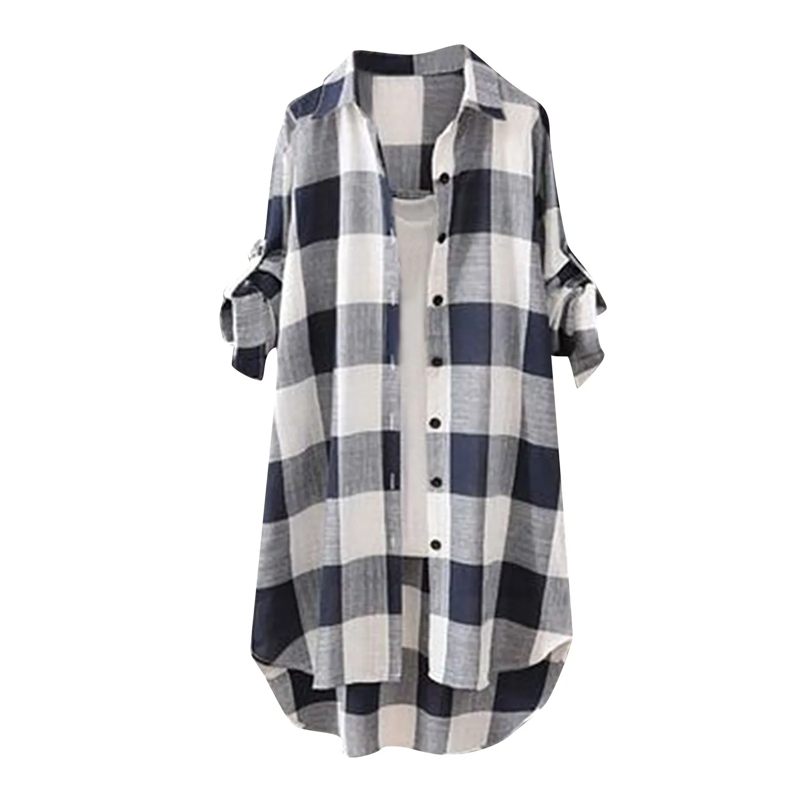 С длинным рукавом Женские рубашки на пуговицах в уличном стиле, мягкие, хлопковые, льняные повседневные размера плюс решетки Туника Футболка с модным принтом, топ для тренировок для женщин