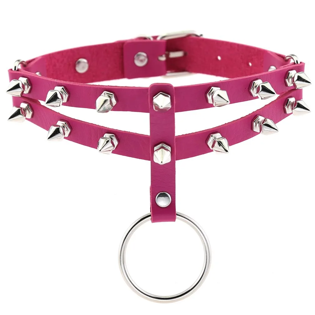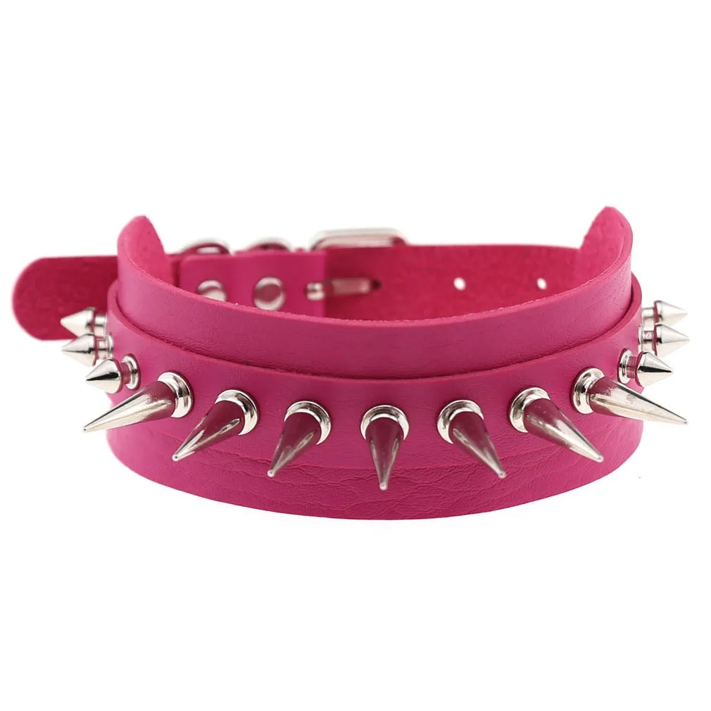 Горячая Harajuku Rock Спайк, коралловые подвески, колье для женщин розового Цвет искусственная кожа колье-чокер, ботинки для панков и готов, образным вырезом праздничные украшения вечерние подарки