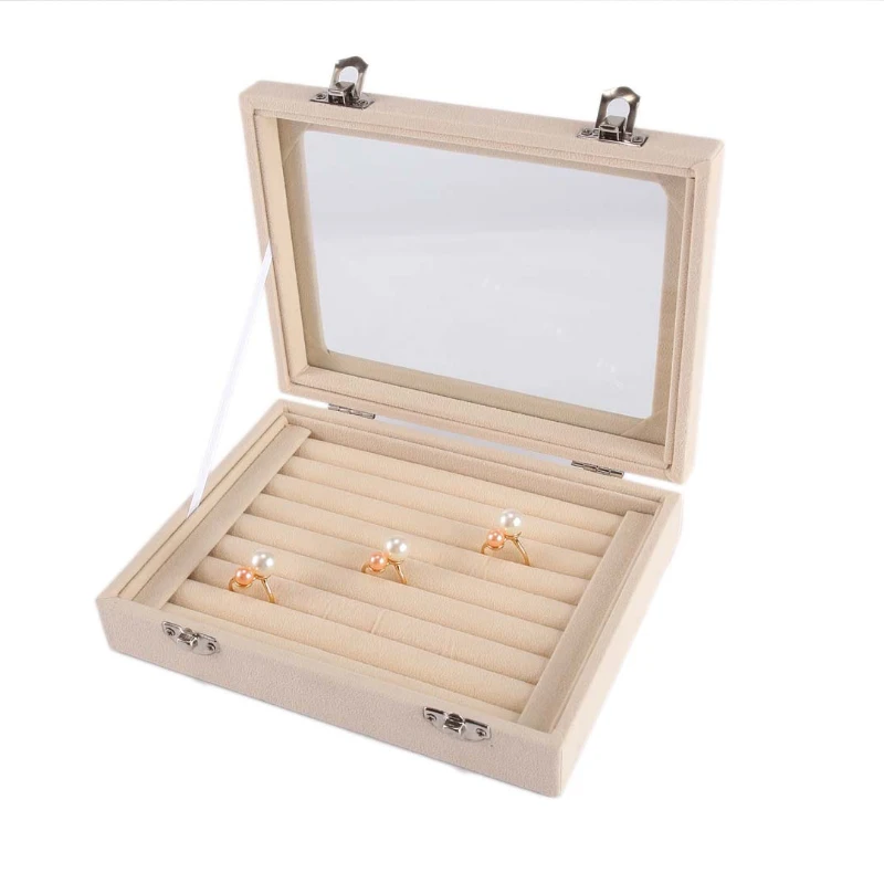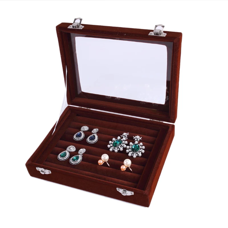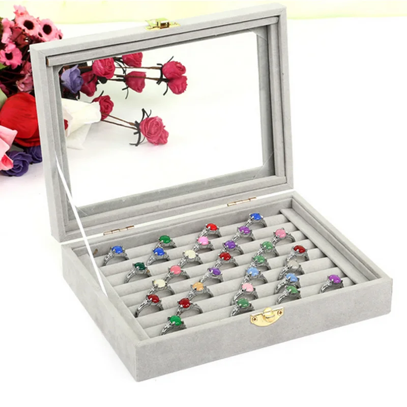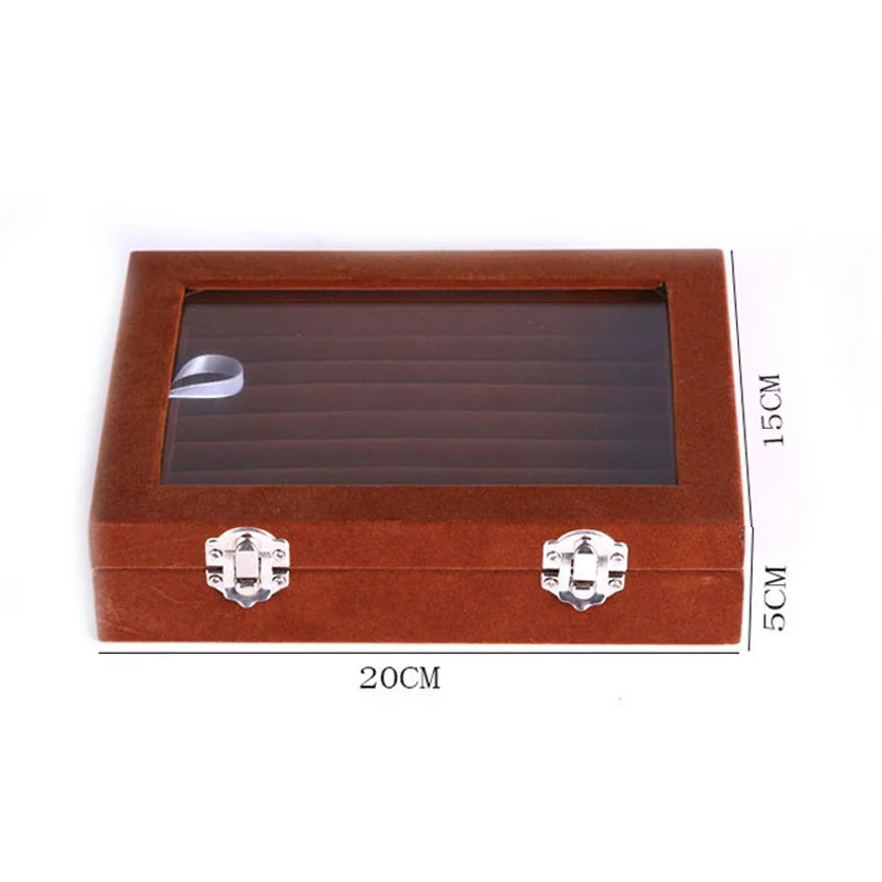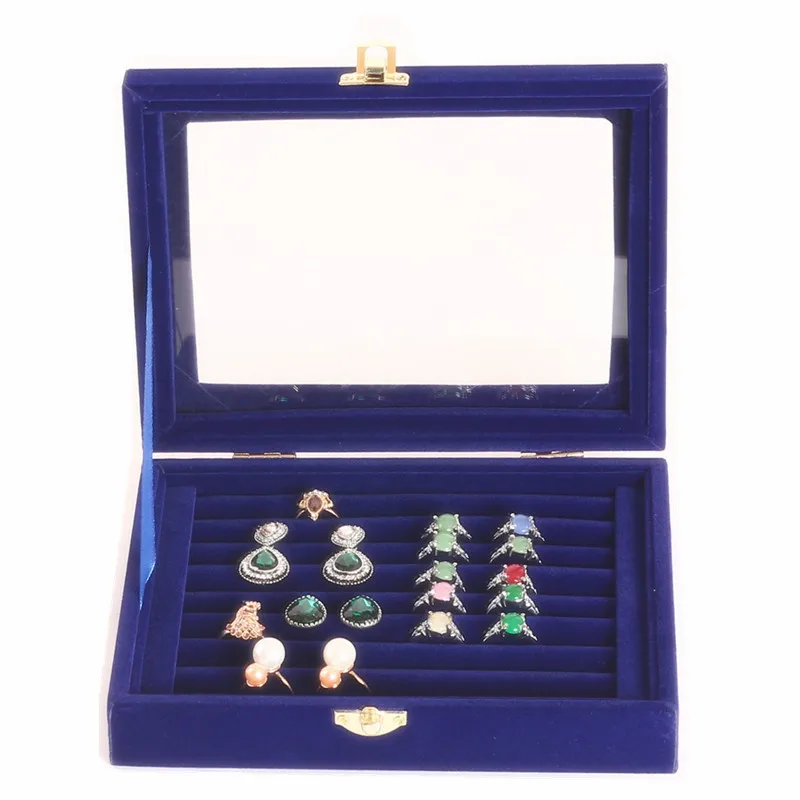 Держатель для колец L20 * W15 * H4.8cm, подарочная упаковочная коробка, органайзер для ювелирных изделий с прозрачной стеклянной крышкой, высококачественный бархат различных цветов
