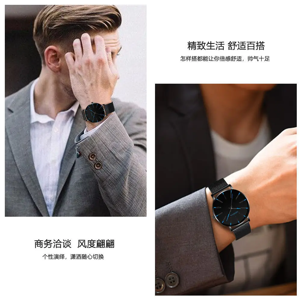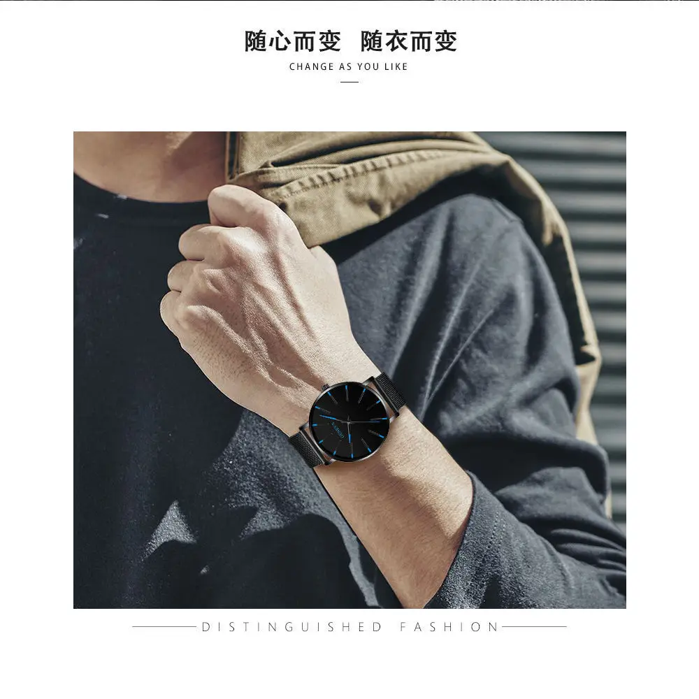 Часы наручные мужские ультратонкие, модные простые кварцевые деловые, с сетчатым ремешком из нержавеющей стали, в минималистском стиле