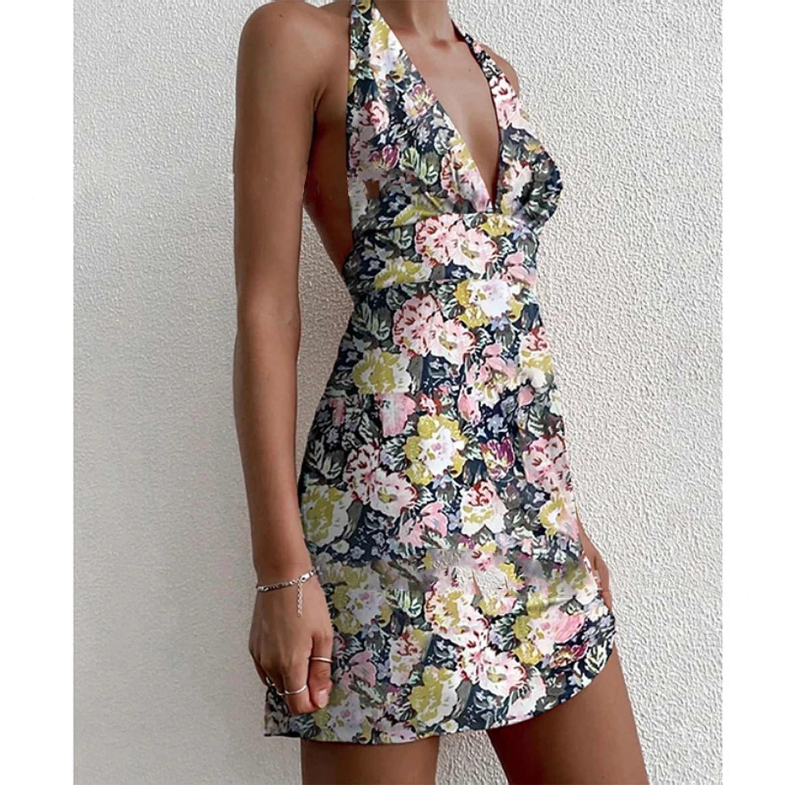 Сексуальное облегающее платье Y2K с лямкой на шее и открытой спиной, вечерние летние мини-платья без рукавов с лямкой на шее, Женская Модная элегантная уличная одежда