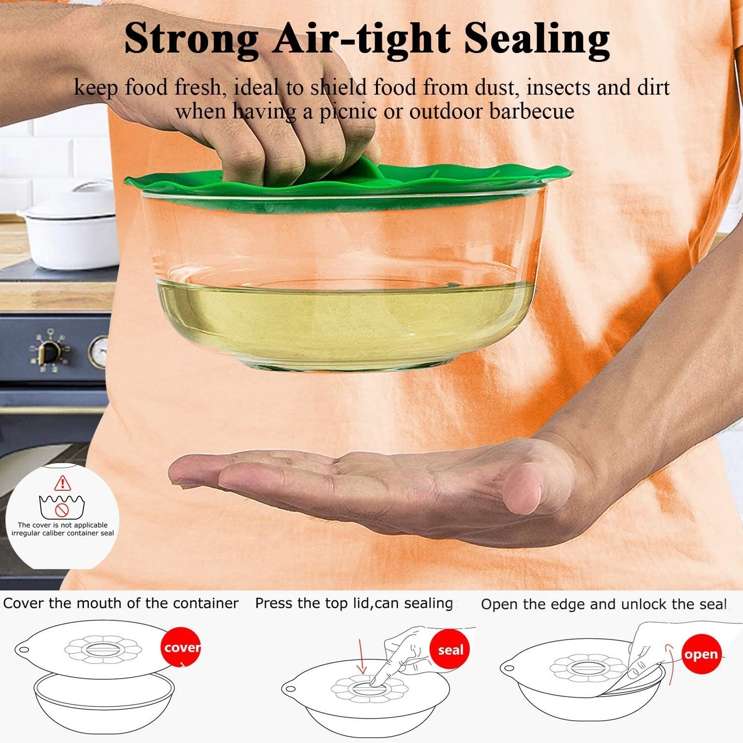 5-компонентная крышка. Сохраняет еду свежей, предотвращает проливание и разбрызгивание!Многоразовые и больше нет необходимости в одноразовой пластиковой пленке.