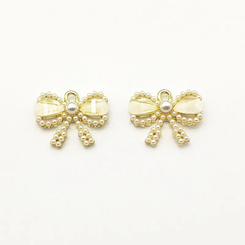Новое поступление! Подвеска с искусственным жемчугом и бантом для браслета, ожерелья, сережек ручной работы, аксессуары сделай сам, Ювелирная фурнитура, 16x20 мм, 50 шт.