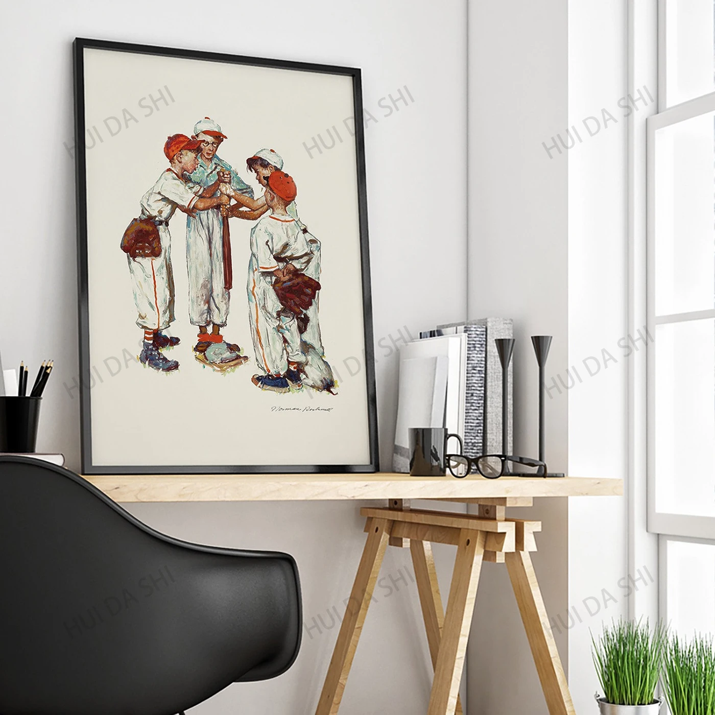 Норман Роквелл Бейсбол Спорт Портфолио оригинальный винтажный плакат, Мгновенная загрузка, Американская Спортивная иллюстрация художественный плакат