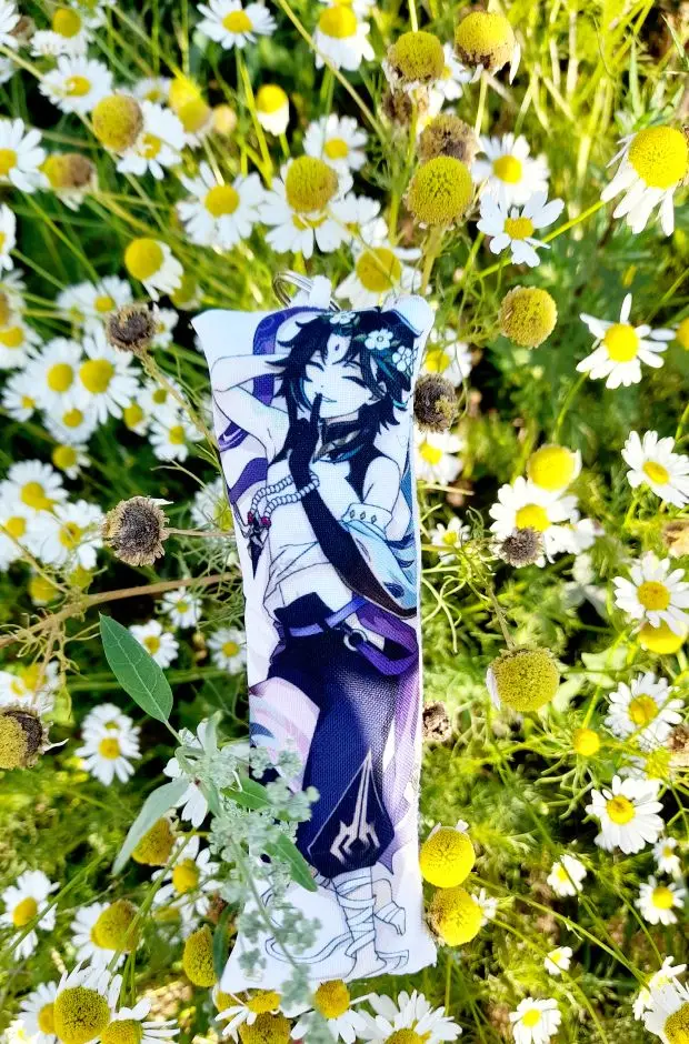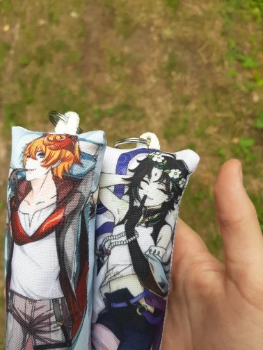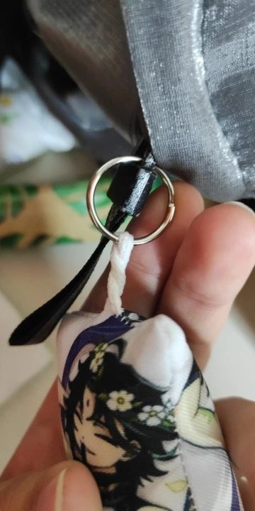 Дакимакура мини оснащена кольцом, вы можете ее использовать как брелок или повесить на рюкзак.