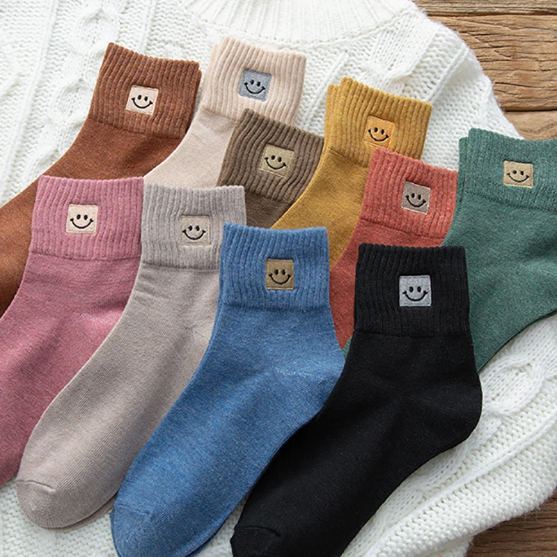 5 паркомпл. для женщин из хлопка со смайликами носки с вышивкой с героями мультфильмов милые уход за кожей лица, однотонный цвет, дышащие и Happy Harajuku Повседневная забавные носки для девочек