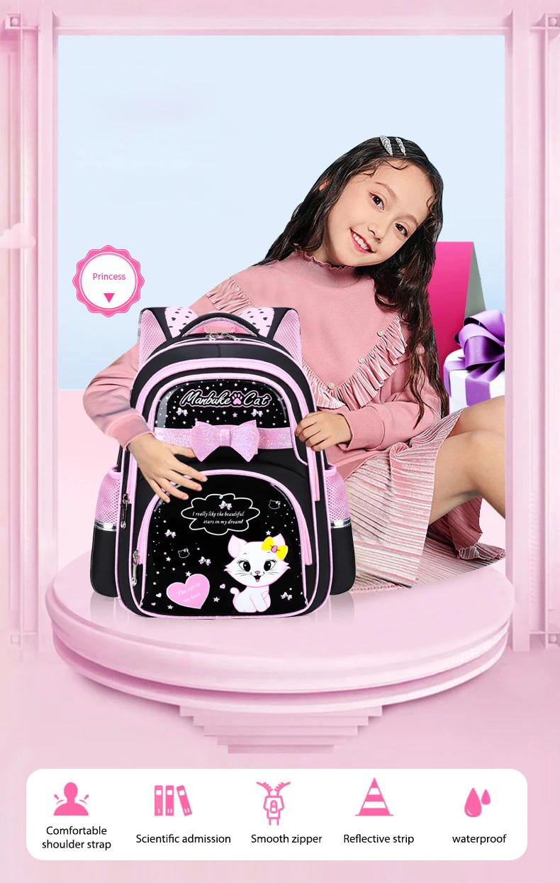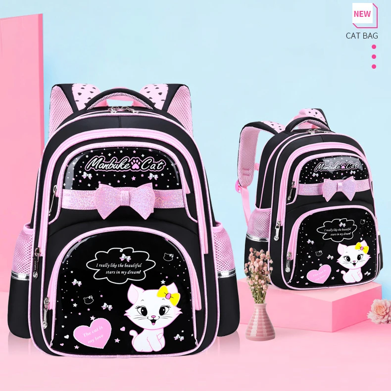 Ортопедический рюкзак для девочек, корейский водонепроницаемый портфель для начальной школы с милым котом, 2021