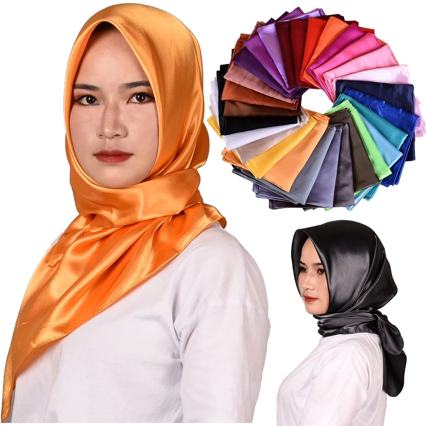 Малазийский мусульманский однотонный тюрбан, женский шелковый шарф 90*90, атласный большой квадратный шарф, оптовая продажа от производителя, бесплатная доставка