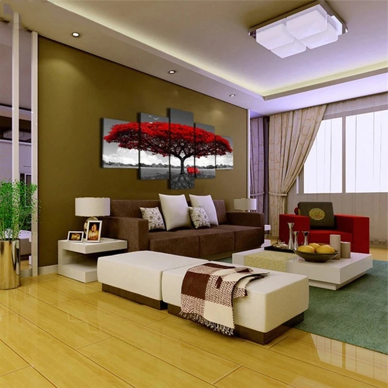 5 панелей, абстрактное красное дерево, картина маслом, печать на хо...