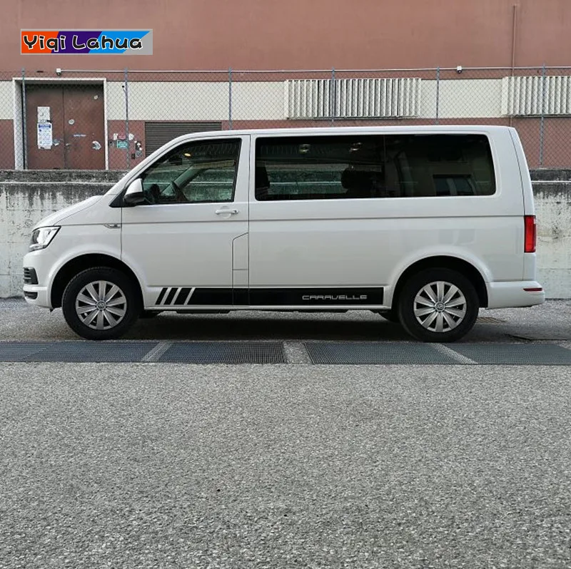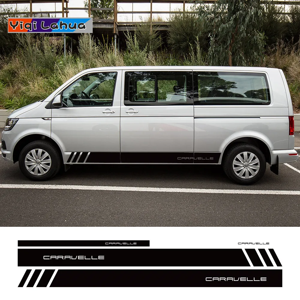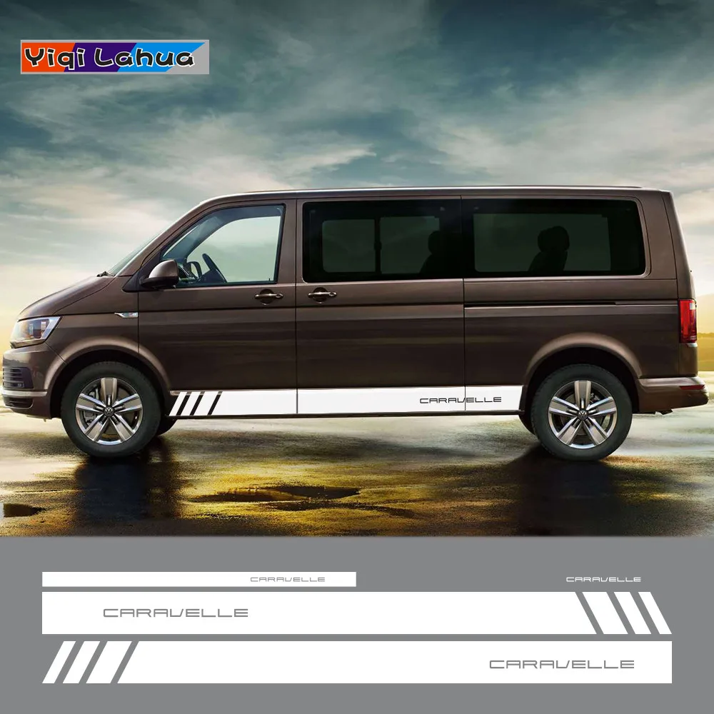4 pçs porta боковой do carro decalques saia listras adesivos para volkswagen vw caravelle transporter t4 t5 t6 diy acessórios de ajuste automatico