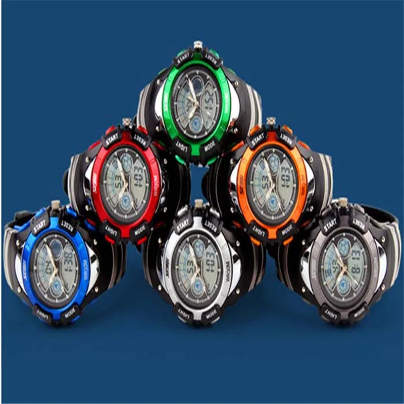 100% новое высокое качество Показывает время цифровые цифры Цифровые и аналоговые спортивные часы с двойным дисплеем Отображение времени в числах показывает час, минуты и секунды Отображение дня и даты 12h/24h Включенная функция будильника Функция остановки часов входит в комплект Четыре кнопки для управления различными функциями Вес: 60 г Материал ремешка: Резина Пол: дети Диаметр циферблата: 3,3 см