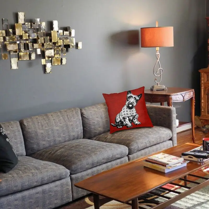 Модная винтажная квадратная наволочка шотландского терьера, наволочка для домашней декоративной подушки в виде собаки Скотти для гостиной