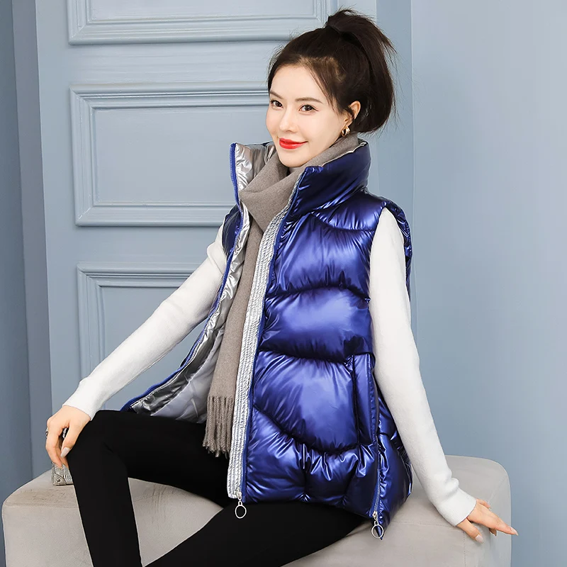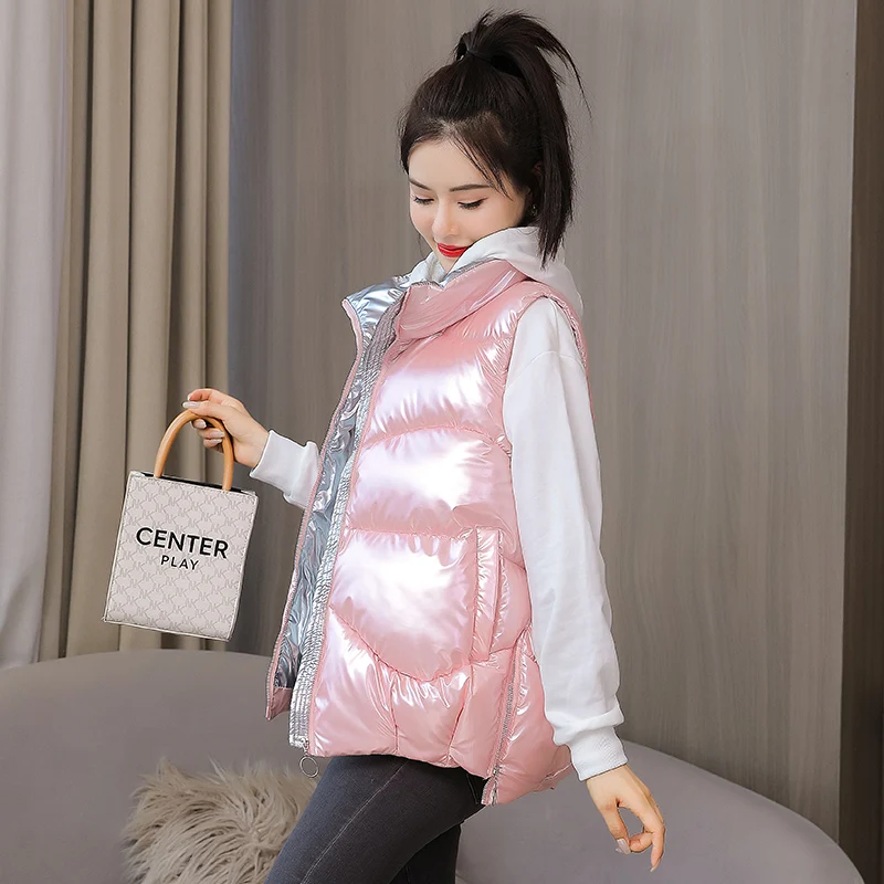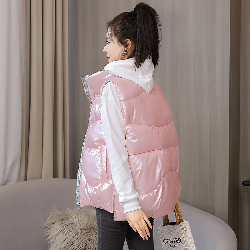 FORERUN женский зимний жилет, блестящая безрукавная куртка, однотон...