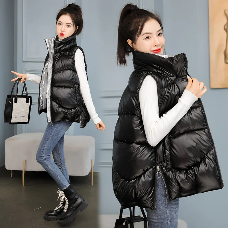 Зимний женский пуховой жилет с воротником-стойкой, Однотонный женск...