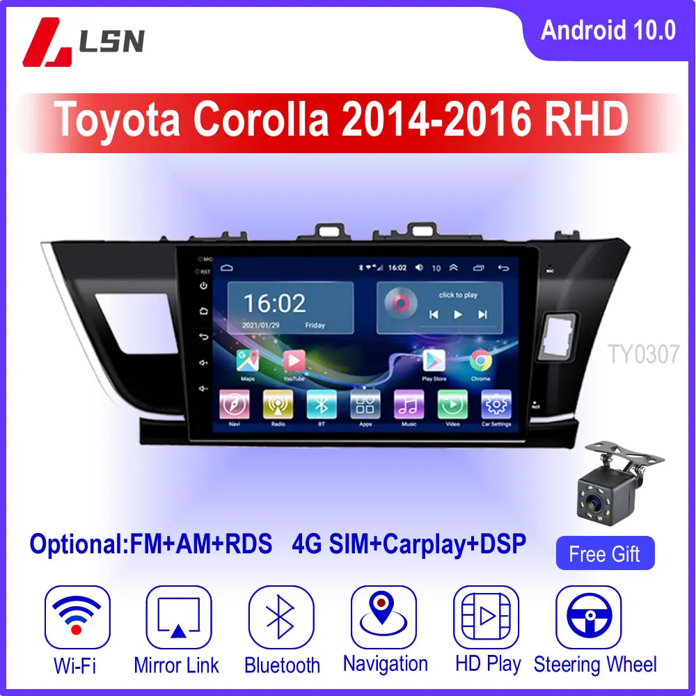 Радиоприемник автомобильный, 10 дюймов, Android 10, для Toyota Corolla 2014,2015,2016 RHD, мультимедиа, видео, GPS-навигация, Автомобильный плеер