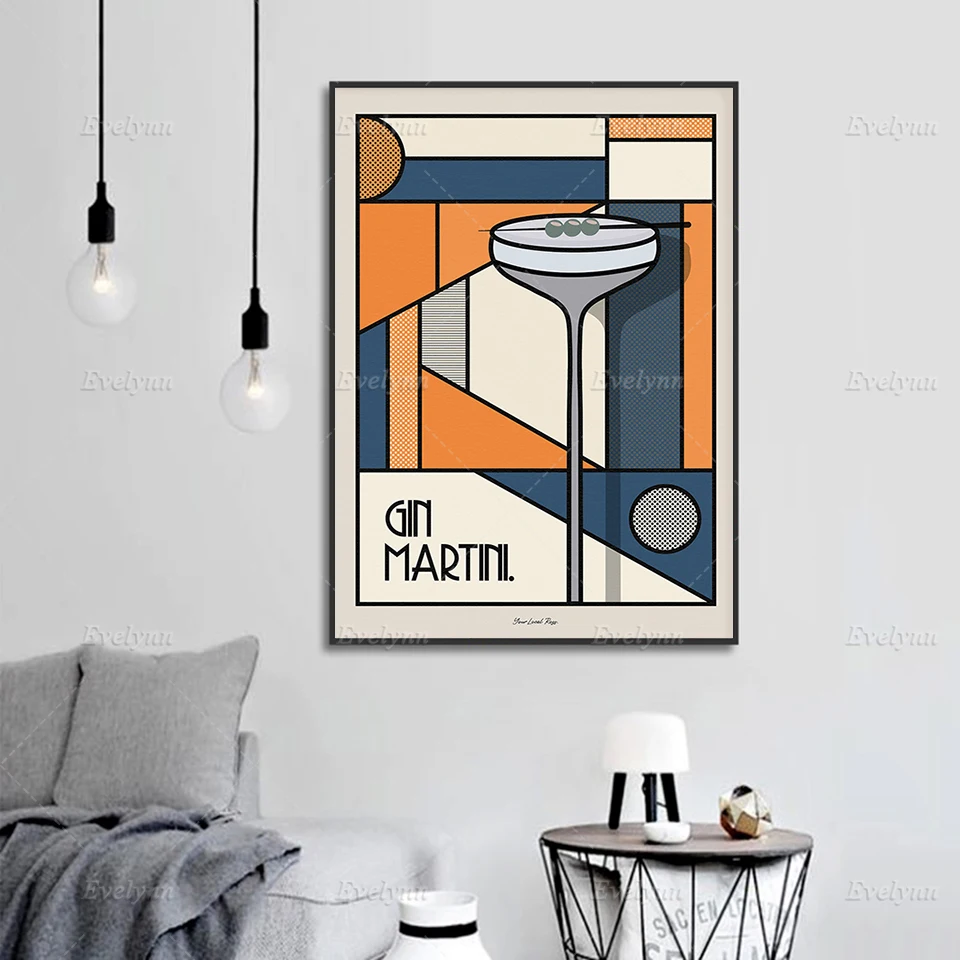 Скандинавский принт Джин мартини-печать еды, искусство на кухне, художественное оформление бара, Постер Negroni, подарок на новоселье, ретро поп-арт