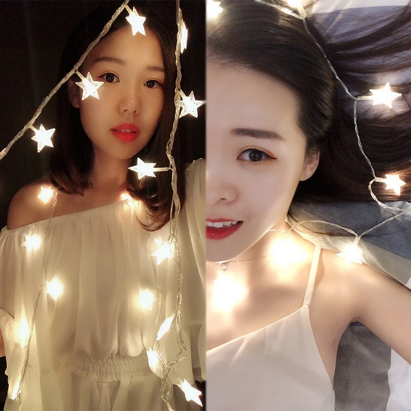 Гирлянда с вишневыми шариками, светодиодная, в виде звезд