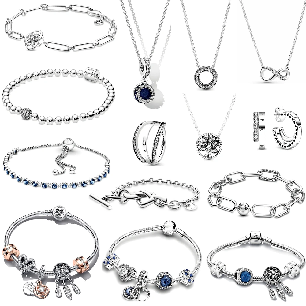 Женский браслет из серебра 100% пробы, с аксессуарами