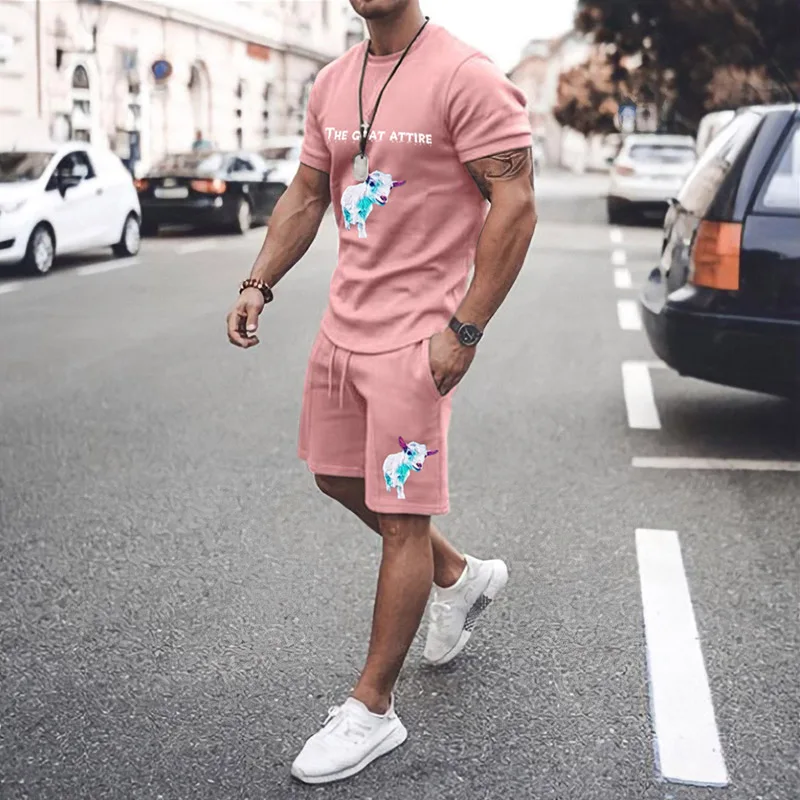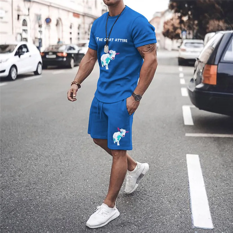 Комплект спортивный мужской из 2 предметов, футболка с коротким рукавом и шорты с принтом, спортивный костюм для бега