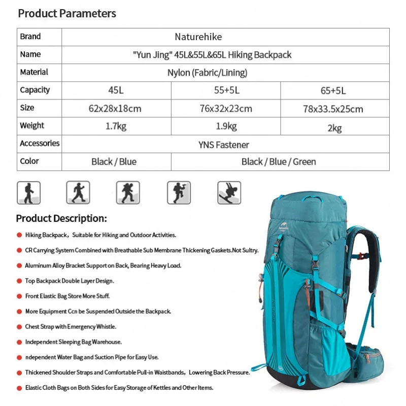 Походная сумка Naturehike, профессиональная сумка для альпинизма, большая емкость, походный рюкзак для активного отдыха, система подвески, альпинистский рюкзак