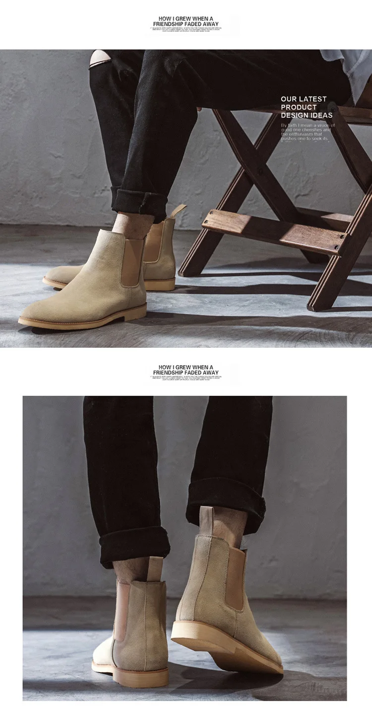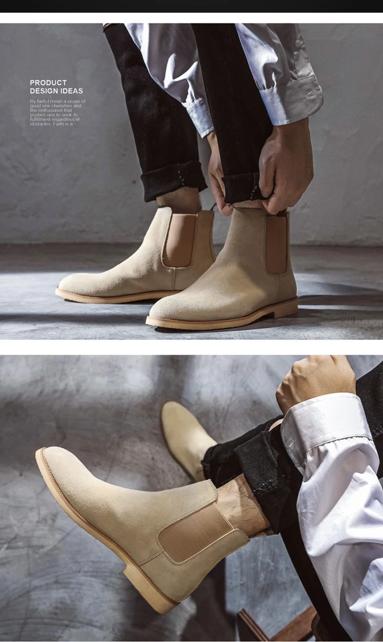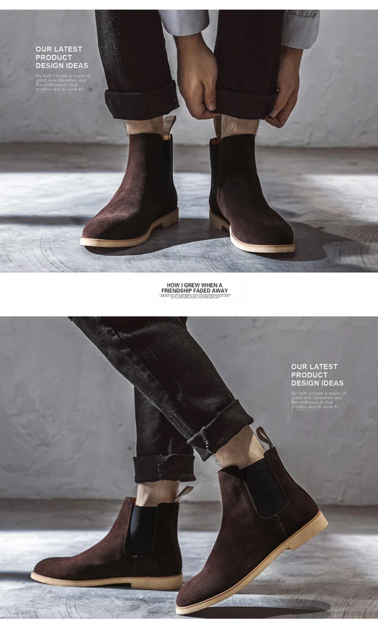 Ботинки Челси мужские из натуральной коровьей замши, коричневые, весенние, винтажные