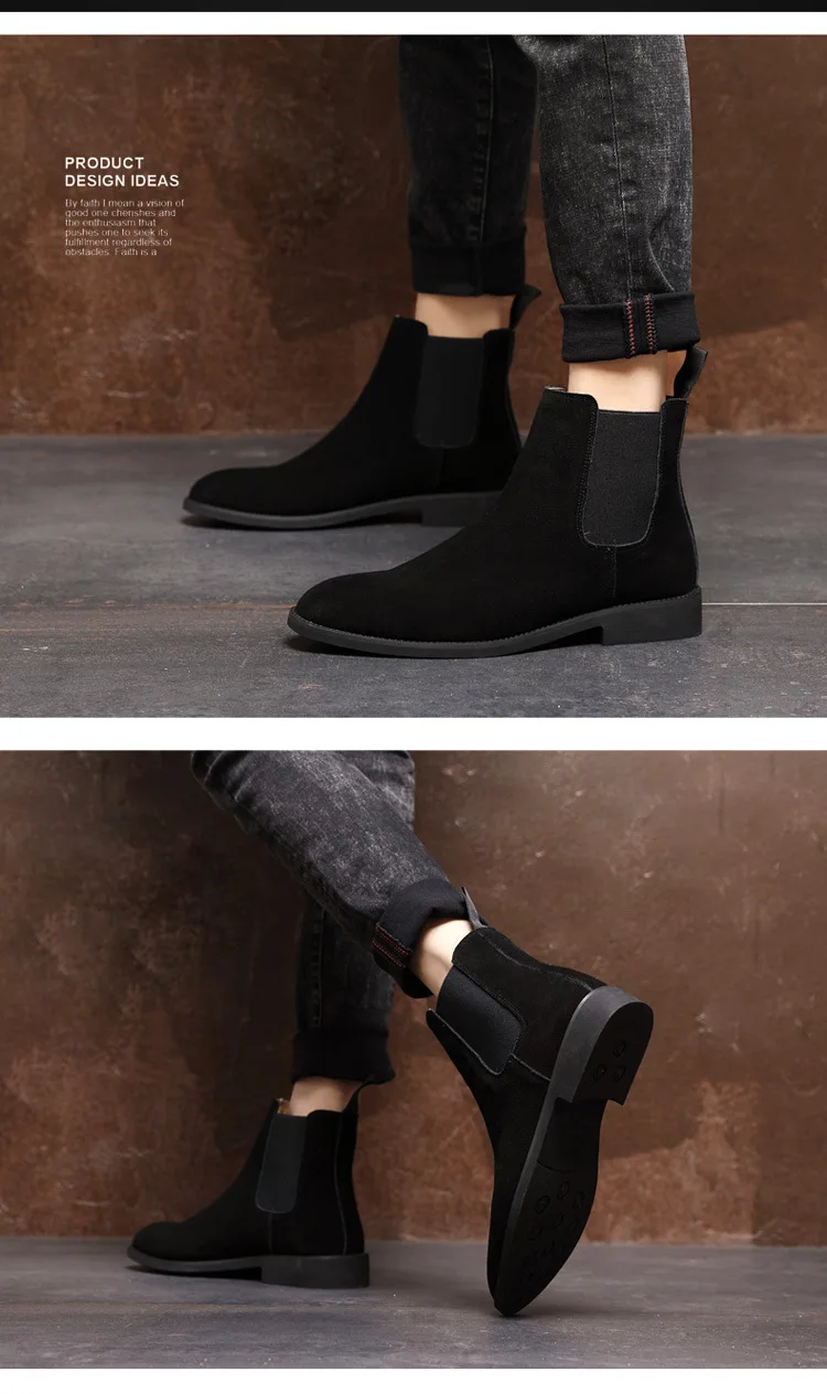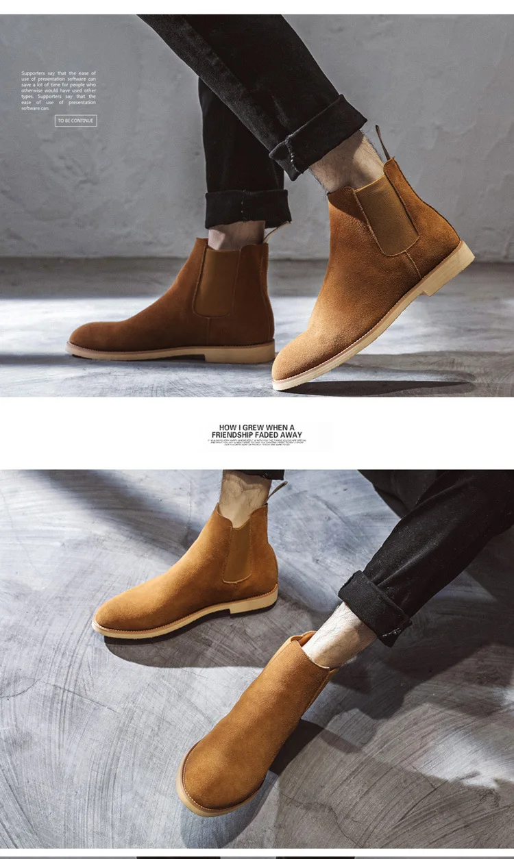 Мужские замшевые ботинки челси из натуральной коровьей кожи, на пла...