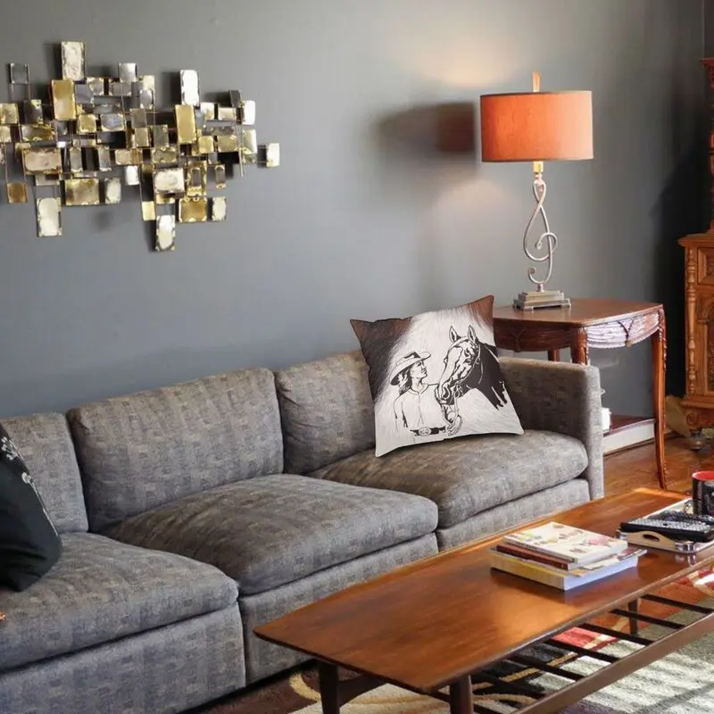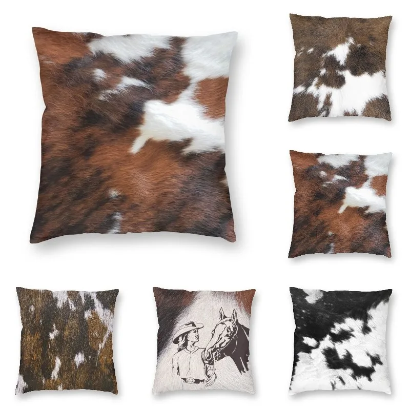 Лошадь в ковбойском стиле в западном стиле из воловьей кожи коровы волос Наволочка на подушку размером 45*45 см домашний декор 3D, объемная печать, животные, текстура подушка для автомобиля