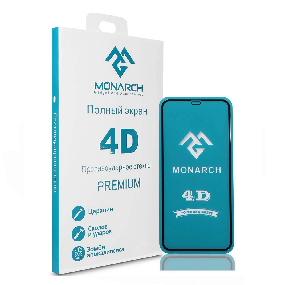 Защитное стекло премиум класса Monarch полноэкранное 4D для iPhone 12 mini с чёрной тонкой узкой рамкой цельное литье защита
