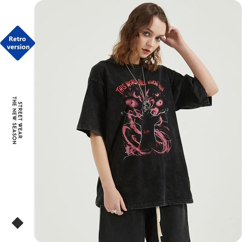 Мужская футболка с коротким рукавом Футболка 2021 аниме боль Футболка с принтом в стиле ретро Выбеленные 100% хлопок футболки harajuku футболка уличная одежда в стиле хип-хоп