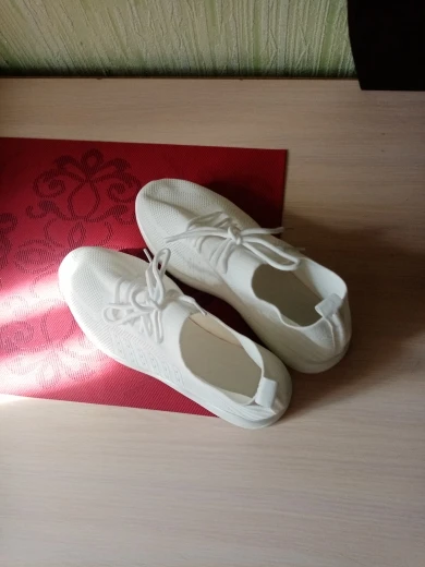 Кроссовки удобные. Качество на сезон. Подошва мягкая, быстро просядет. Не сразу увидела, что шнуровка декоративная, надеваются как "носочек". Выглядят на ноге очень аккуратно, размер четко по таблице продавца. Спасибо за товар по акции! Честный и порядочный продавец