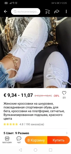 Кроссовки купила по акционной цене 225 руб две пары: серые и красные. Продавец честно их отправил. Кроссовки легкие, тканевые. Ткань плотная, при этом нога дышит, я ношу без носка. По траве вообще отлично ходить, никакие колючие семена не цепляются. Выбирала размер по длине стопы 24,5 - 39 размер. Подойдет на широкую стопу. Подошва из полиуретановой пены, но ходить удобно. По линии подошвы немного видны следы клея, но для домашней носки кроссовки нормальные, крепкие. За честность продавцу пять звёзд!
