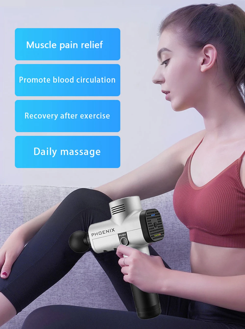 Массажный пистолет Phoenix A2 для расслабления мышц и глубоких тканей, массажер для динамической терапии, вибратор для формирования и облегчения боли в спине и ногах