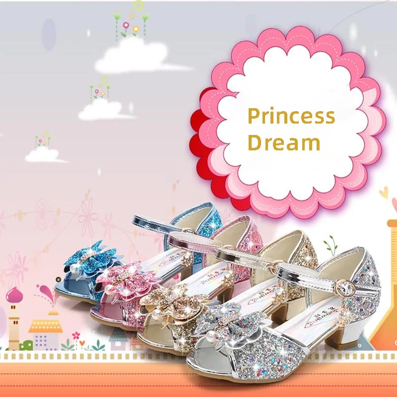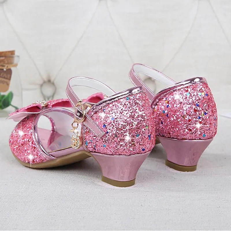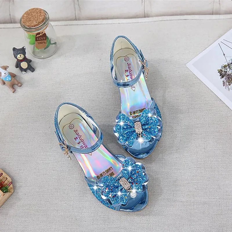 Сандалии для девочек с украшением в виде бабочки из страз для латинских танцев; Детская обувь; Туфли на высоком каблуке туфли в стиле Принцесса; Блестящая кожа; Вечерние платья на свадьбу