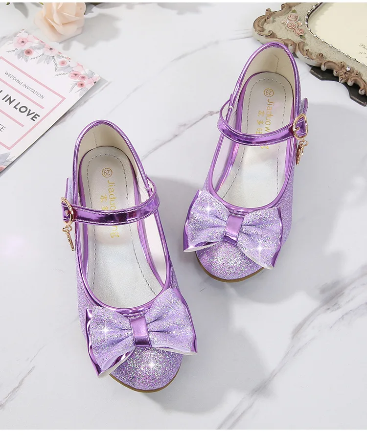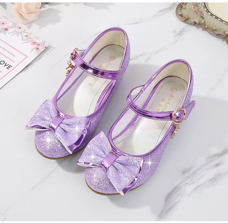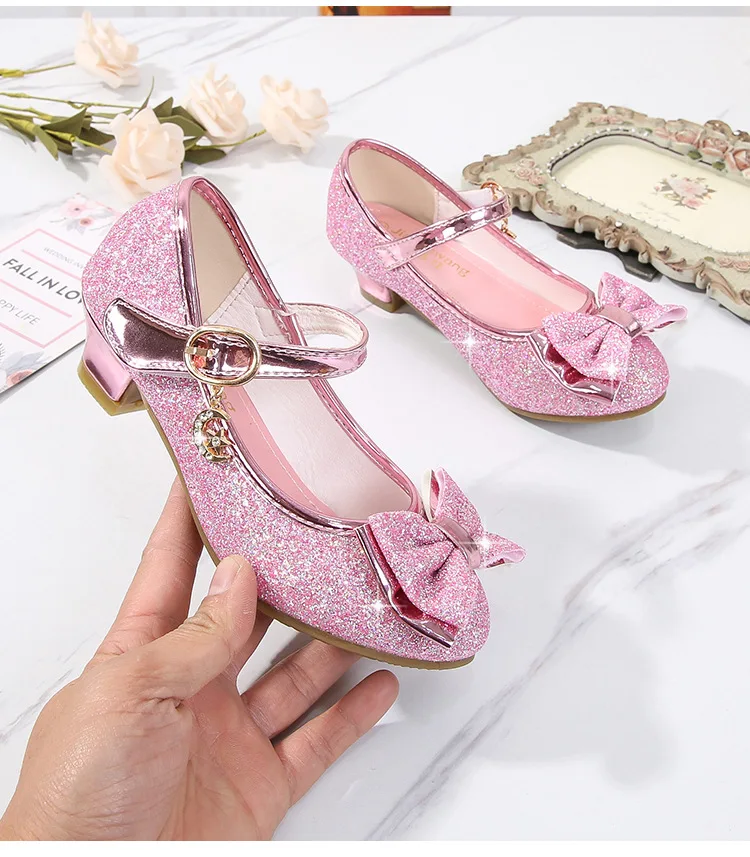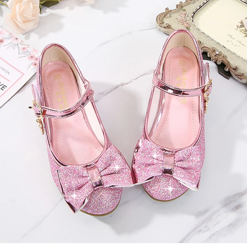 Туфли принцессы для девочек с бантом-бабочкой, блестящие туфли на высоком каблуке с кристаллами, детская кожаная обувь, детские туфли, подарок на день рождения