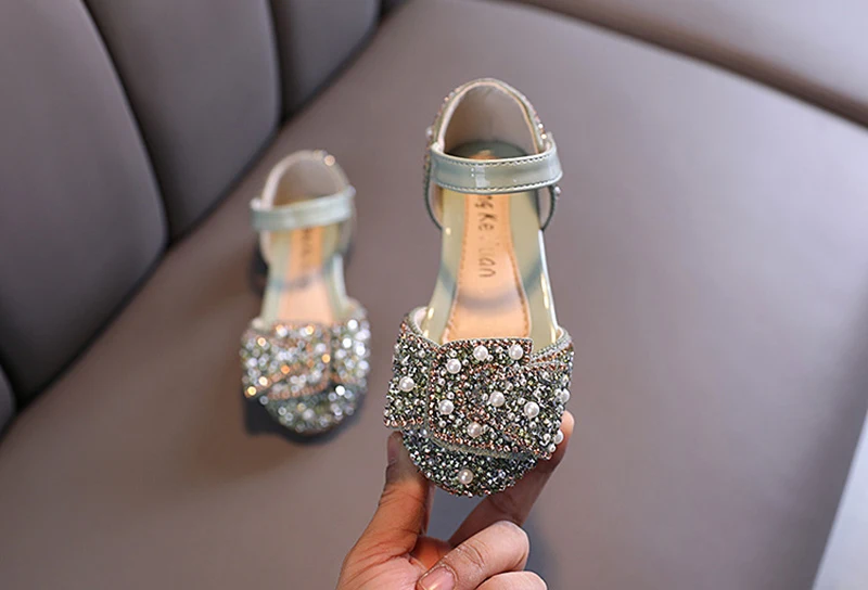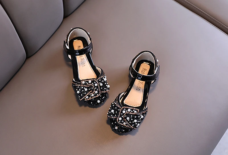 Сандалии для девочек, летняя обувь принцессы, детские туфли с блестками, кружевом, бантом, милые повседневные туфли для танцев с жемчугом, Детская Праздничная Свадебная обувь