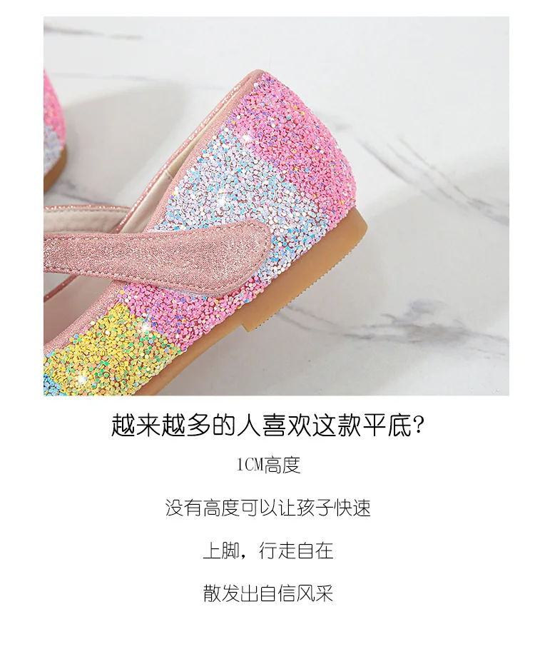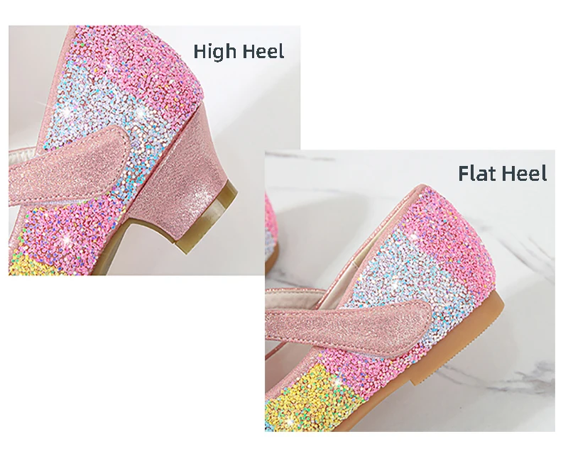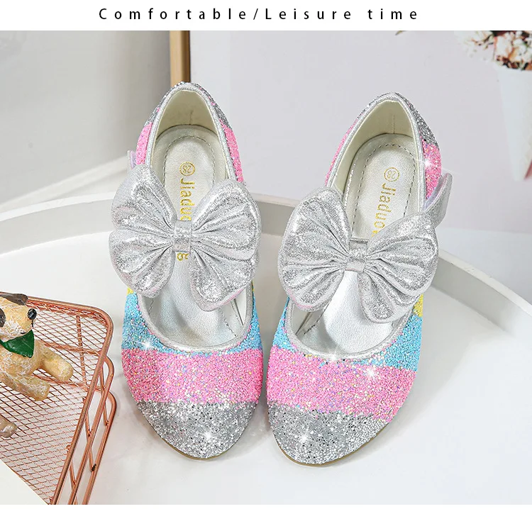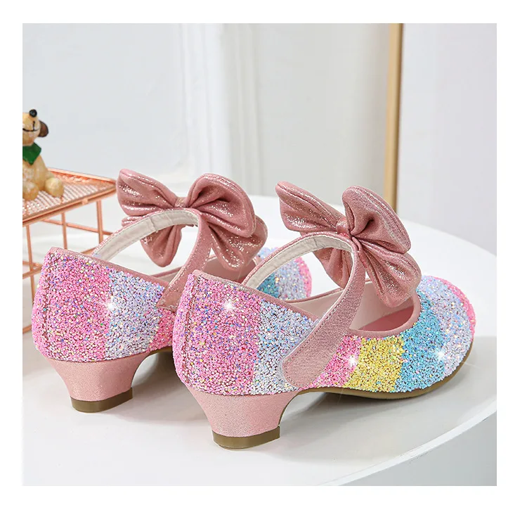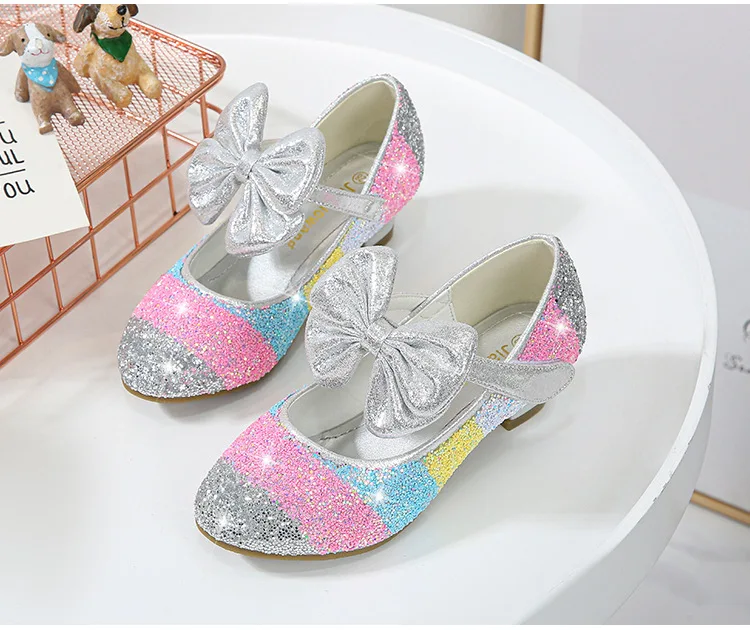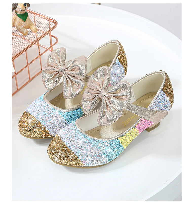 Кожаные туфли для девочек; Обувь принцессы; Детская обувь с круглым носком на мягкой подошве; Обувь принцессы на высоком каблуке с кристаллами; Тонкие туфли