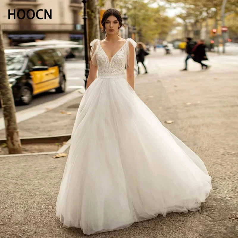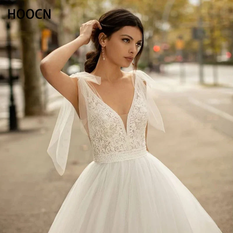 HERBURNL, изящное свадебное платье с V-образным вырезом, из тюля, с аппликацией, с открытой спиной, элегантное кружевное вечернее платье без рукавов, платье для вечеринки