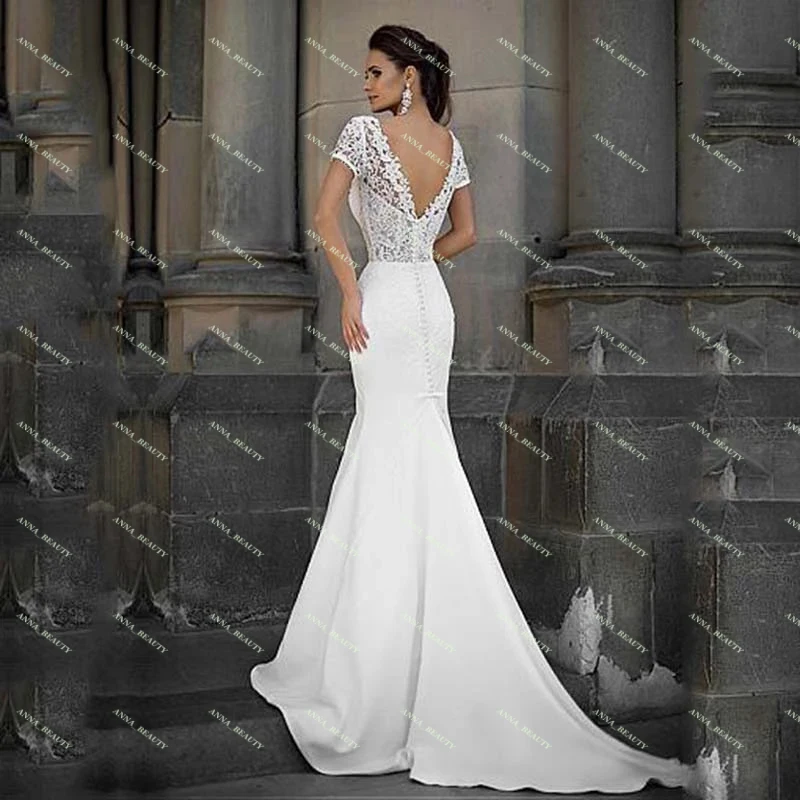 Потрясающие женские кружевные атласные с v-образным вырезом сзади без рукавов Weddin... US $119,00