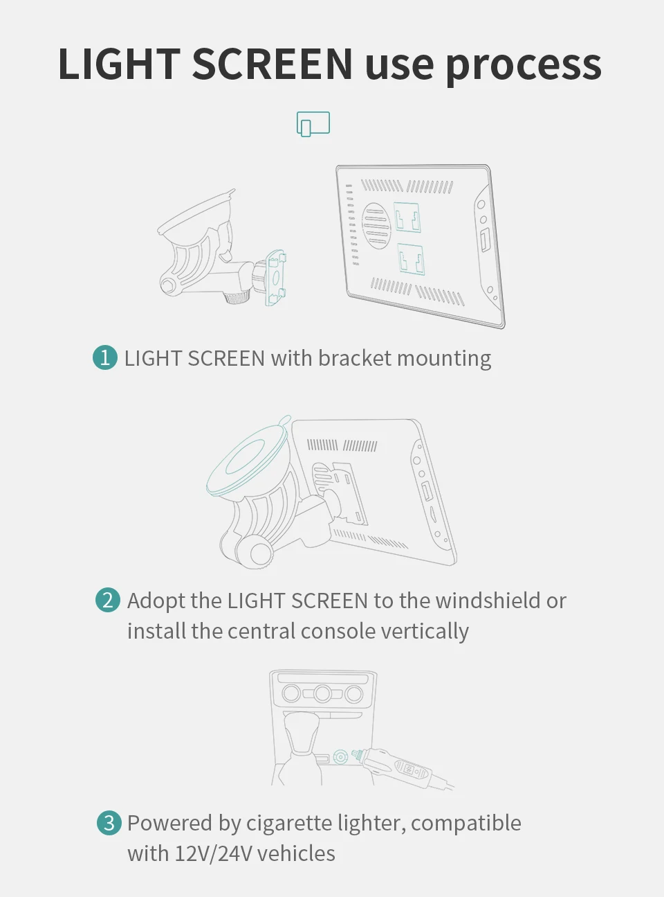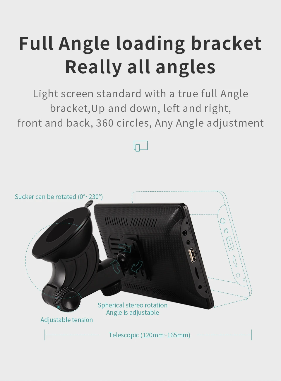 Оснащенный специальной анти-блики на уровне автомобилей экран, по-прежнему может быть хорошо видно при любом светильник, standard 7 дюймовым экраном, то есть, чтобы не блокировать зрение, также может быть большой экран дисплея.