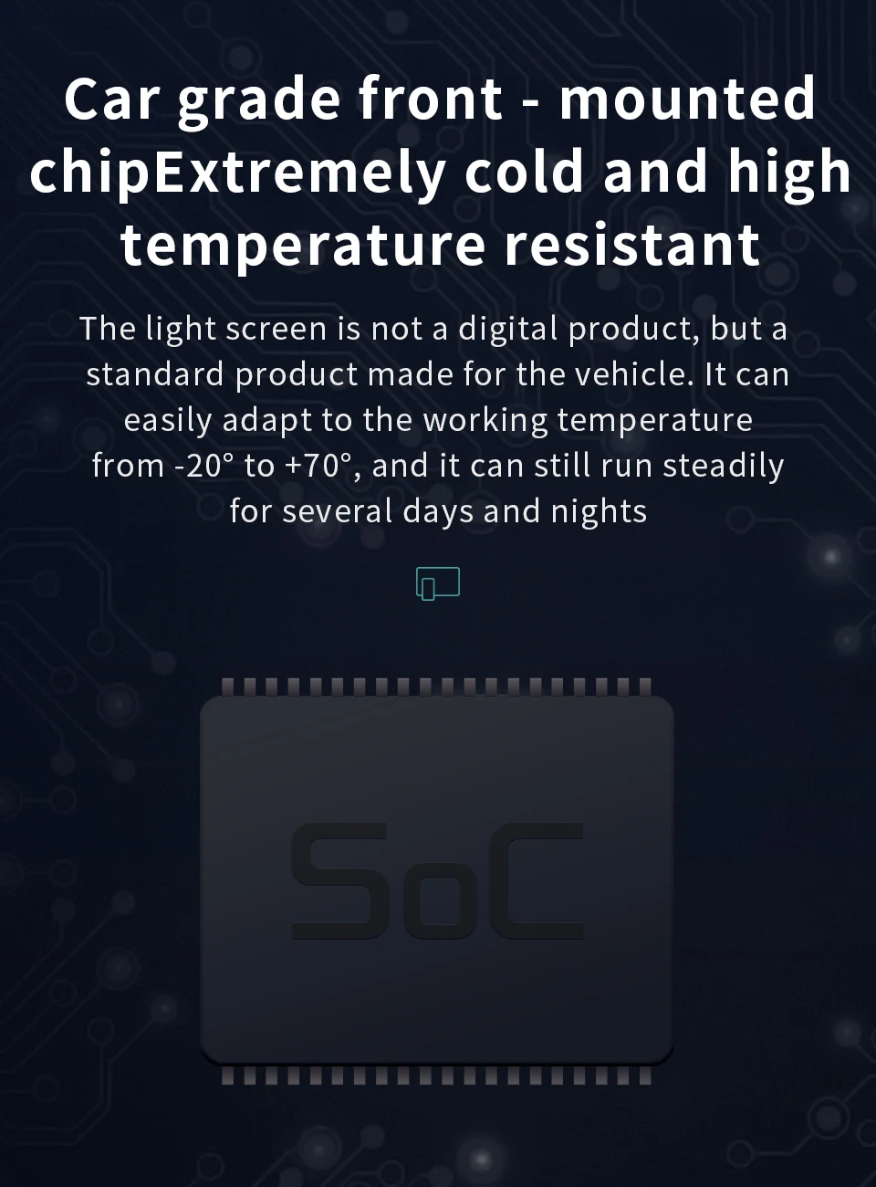 Светильник CARPLAY-это не цифровой продукт, а стандартный продукт для транспортного средства. Он может легко адаптироваться к рабочей температуре от-20 ° до + 70 °, и он все еще может работать стабильно в течение нескольких дней и ночей.
